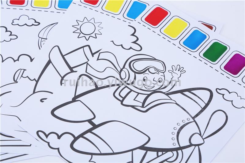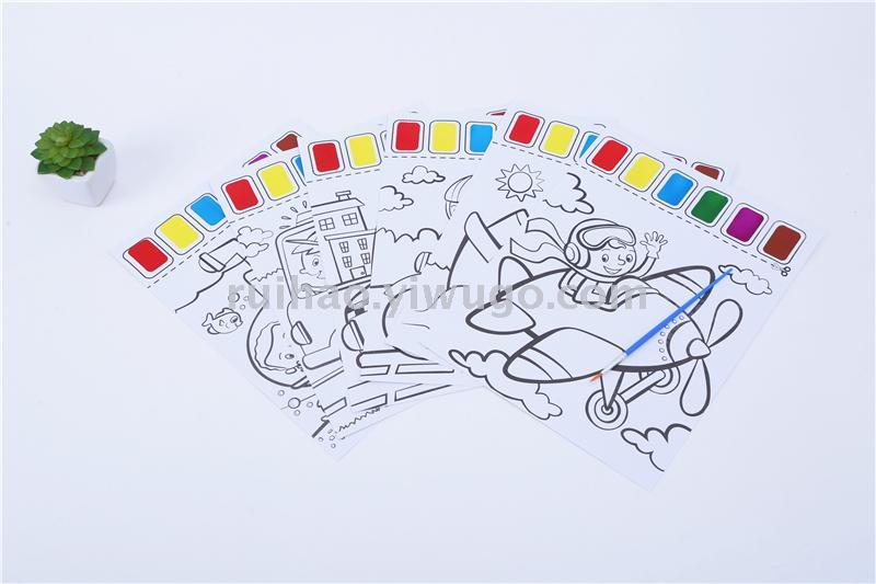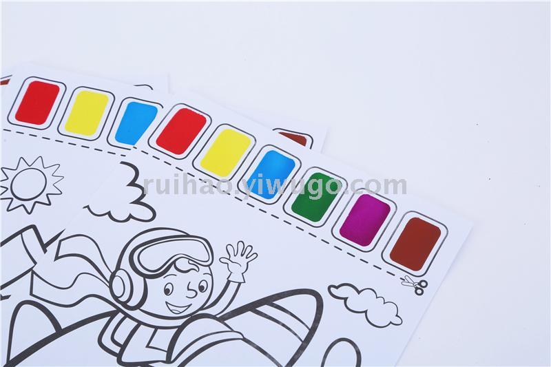 About Product:CM-006 comes with pigment coloring book, printed with 100g double gummed paper and printed with 6 color pigment blocks, each pack has 6 different patterns, and is equipped with a writing brush, when children use it, they can only color and paint with a cup of clear water, which is very convenient. Multiple styles can be mixed in a box.