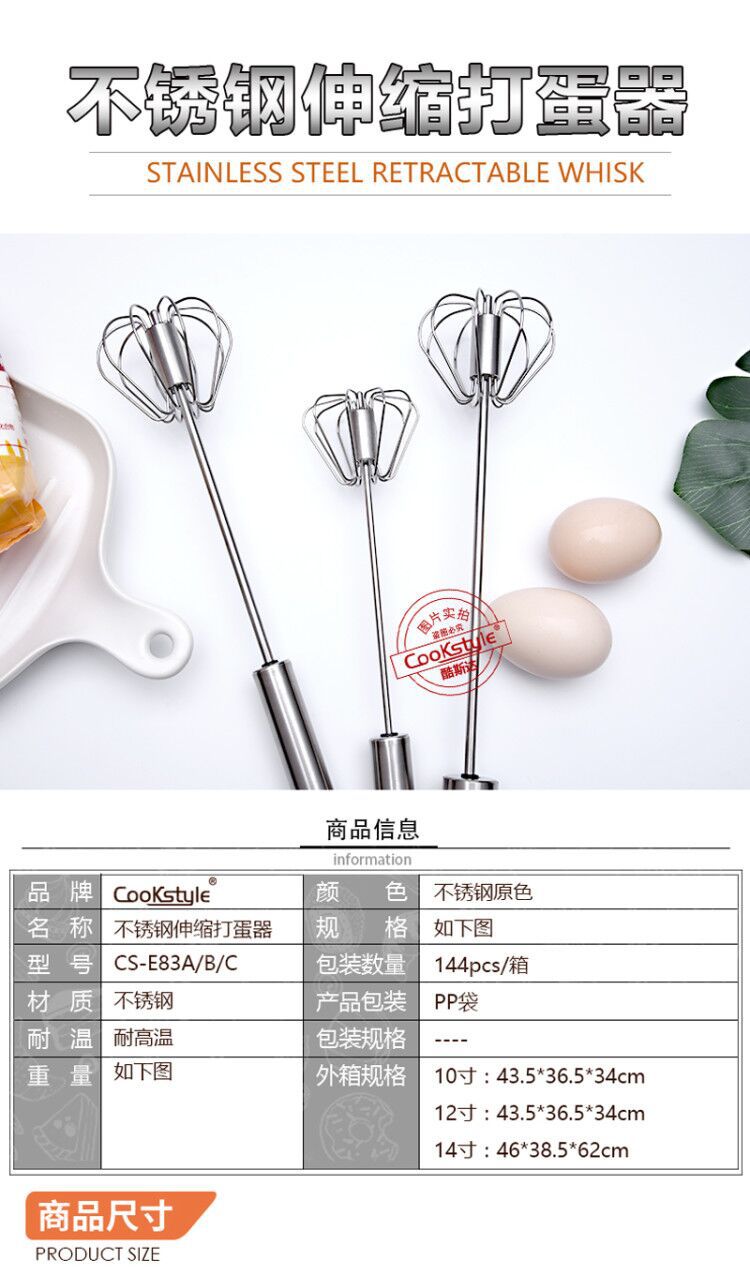 Manufacturer's stock: Multi-functional manual pressure kitchen mixer with 10-inch stainless steel semi-automatic extendable whisk