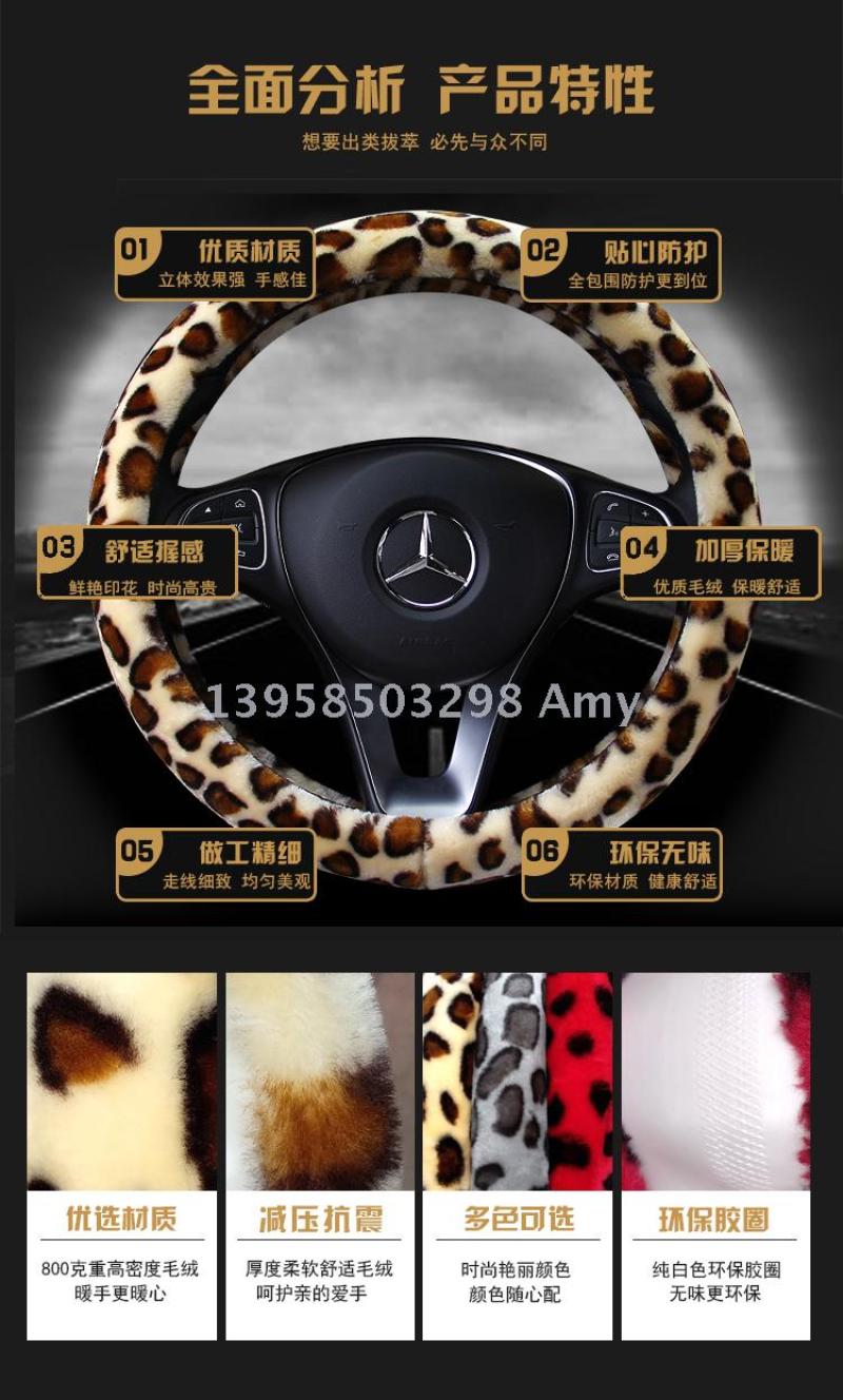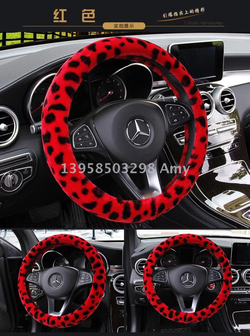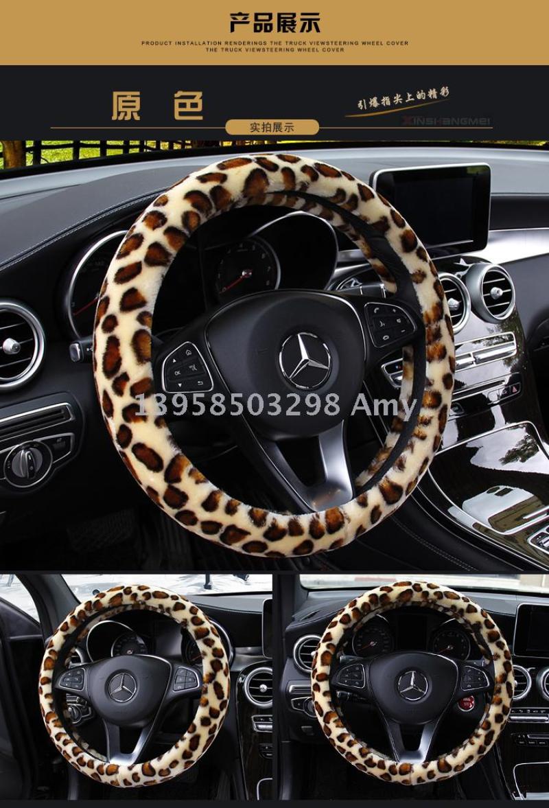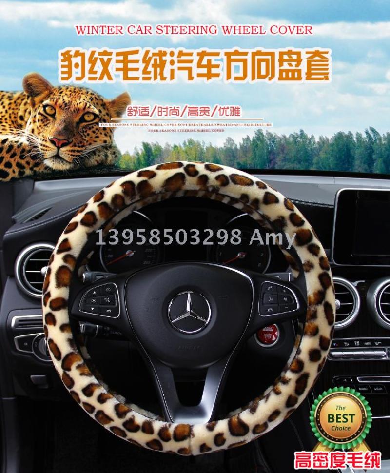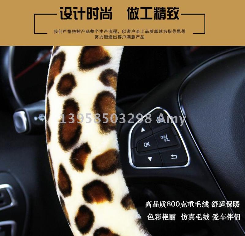 winter fashion leopard print high density plush car steering wheel cover car supplies wholesale