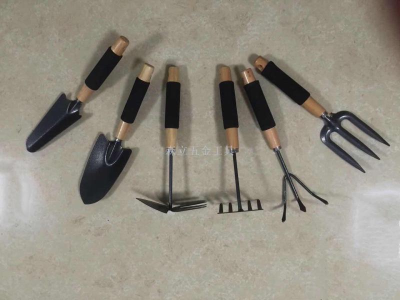 wooden handle foam rubber grip spade two-head hoe three-claw three-tooth five tooth rake wooden handle garden gardening tool rake