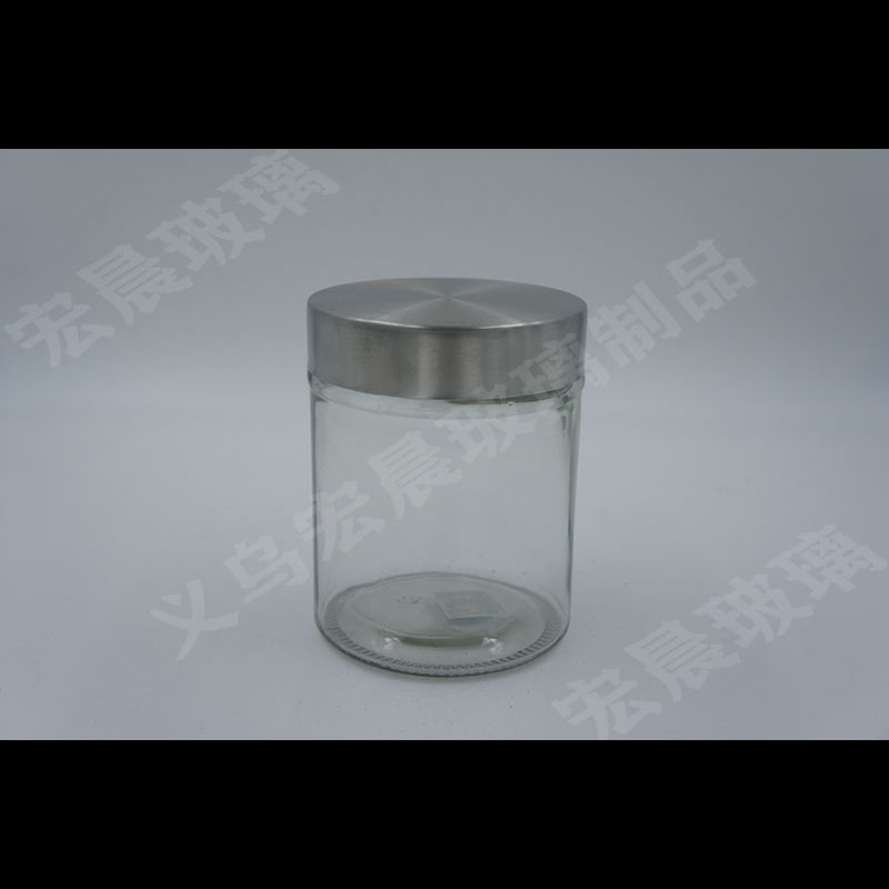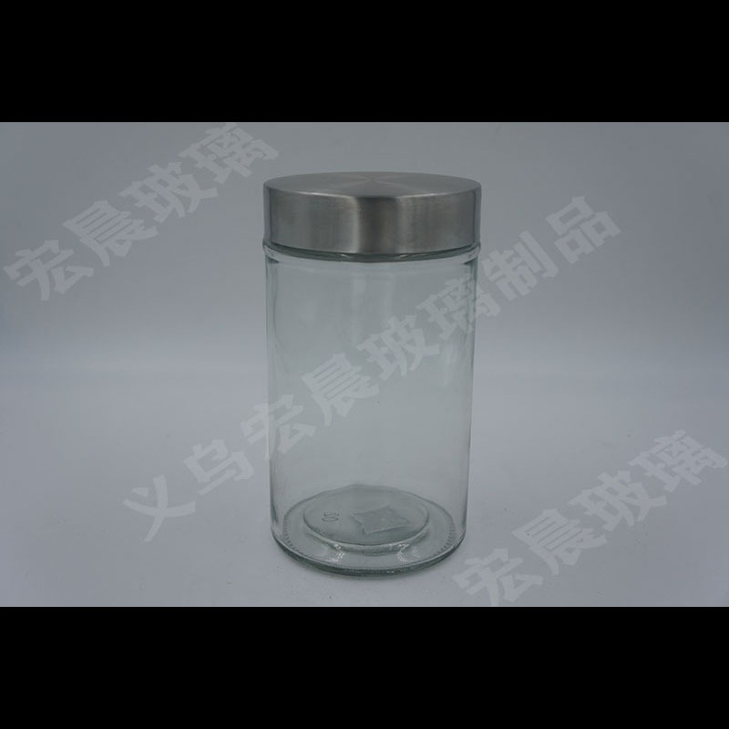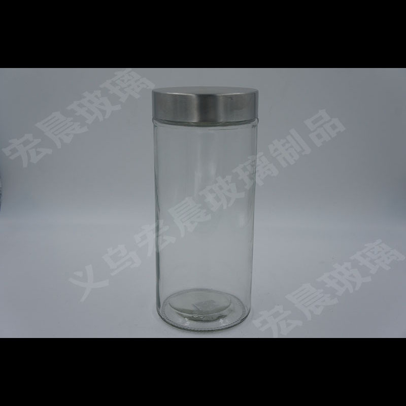 factory direct sales glossy straight column series glass storage sealed jar kitchen tea room storage jar stainless steel cover