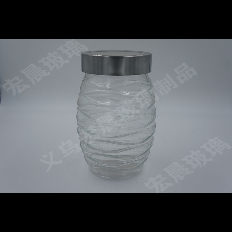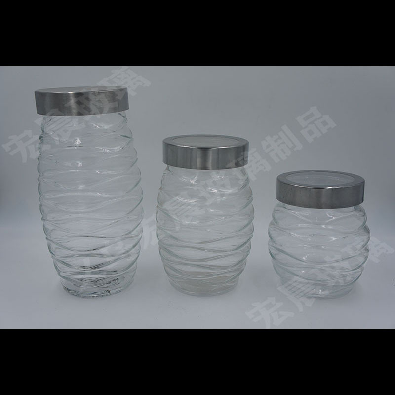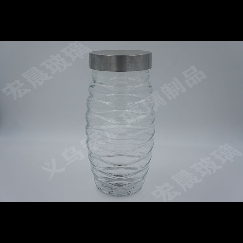 factory direct sales wave big belly series glass storage sealed jar kitchen tea room storage jar stainless steel cover