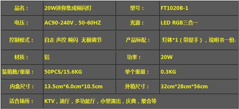Factory direct sales 20W mini integrated strobe light self-propelled voice-activated colorful flash KTV box lighting