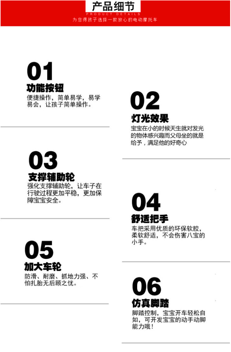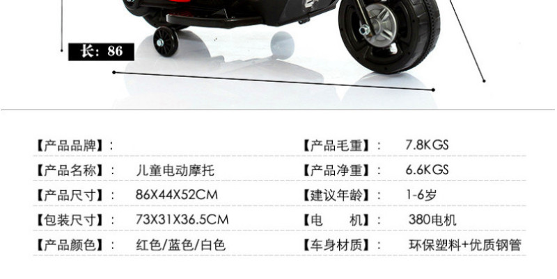 鸟王-儿童电动摩托车. 颜色:白色,红色,蓝色。本产品主要供货外销出口公司及外商直接采购,本厂为拥有自营进出口权的生产企业.可FOB天津港,可收美金,可OEM来样代理加工.贴牌!公司品牌商标: “鸟王” “欧尔玛”