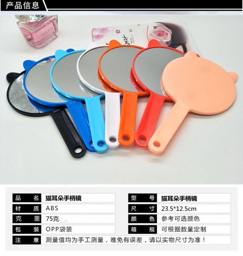 High-definition cat ear handle mirror ladies portable fashion make-up mirror single face beauty mirror can be customized