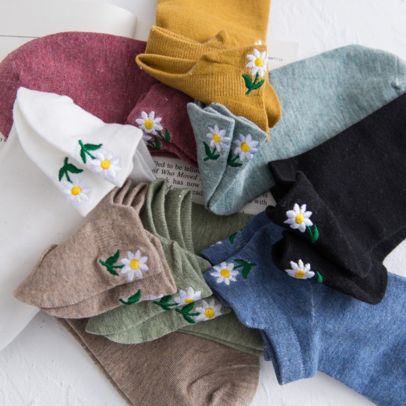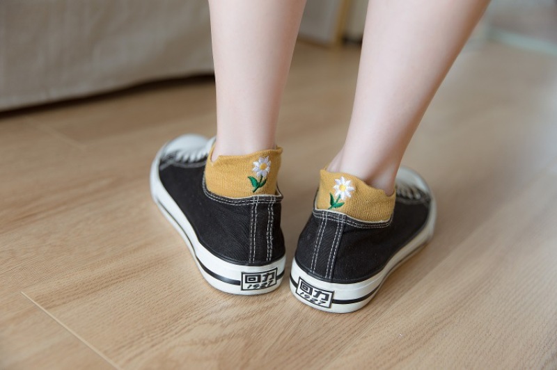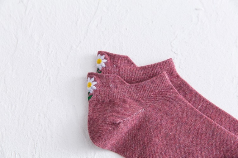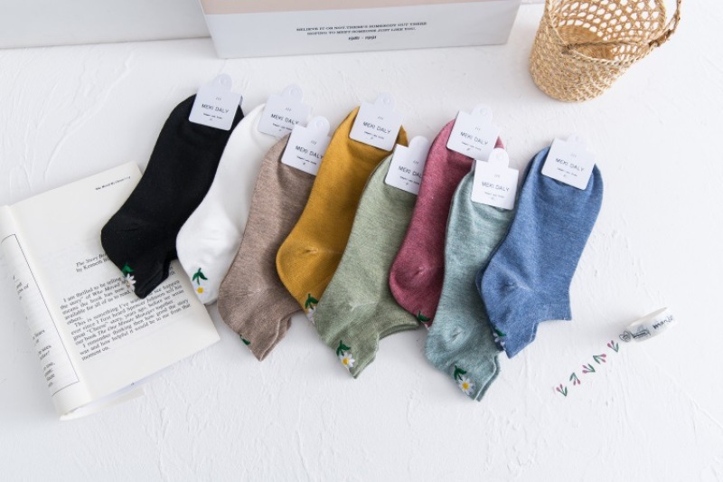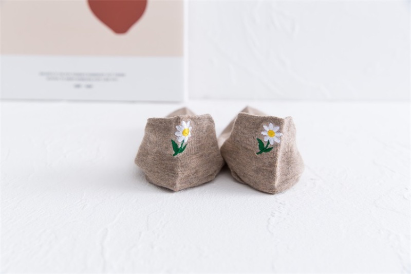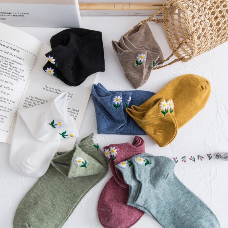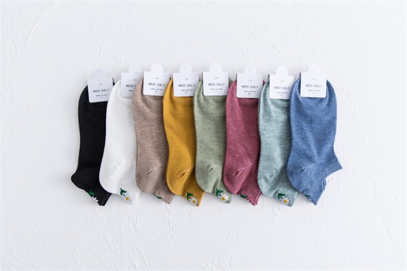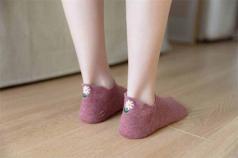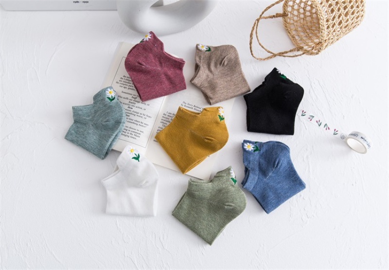 Heel embroidery small Daisy female socks new version of the ladies shallow ship socks cotton women socks manufacturers