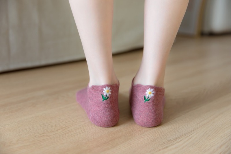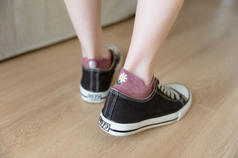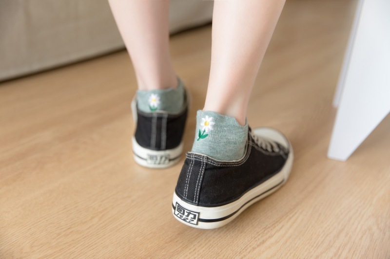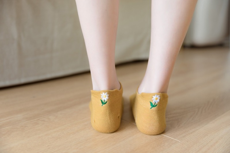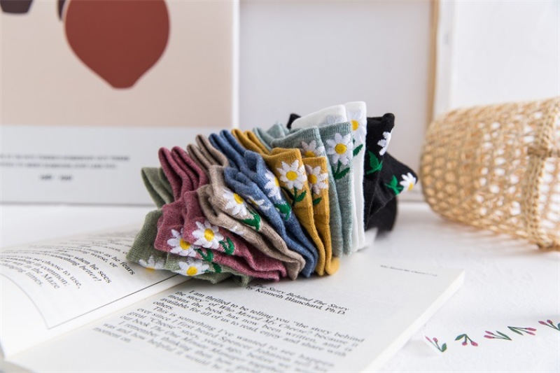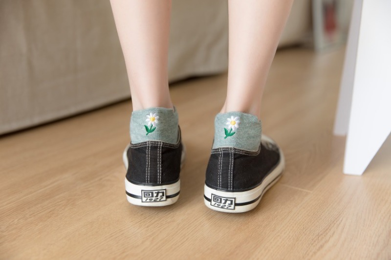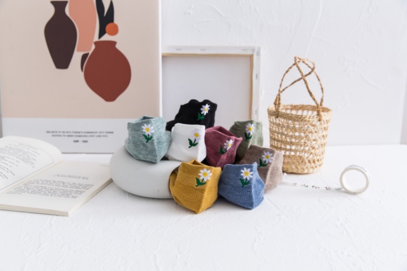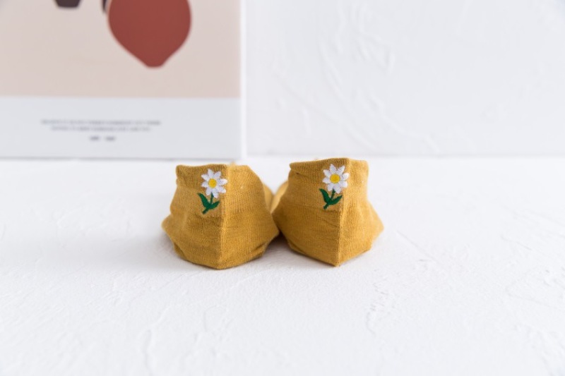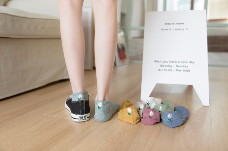 Heel embroidery small Daisy female socks new version of the ladies shallow ship socks cotton women socks manufacturers