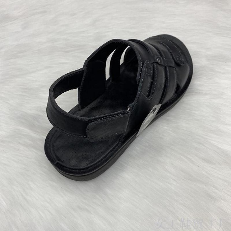 queen shoes trade fashion genuine leather custom solid color hook and loop fastener backstrap massage sole men's beach sandals