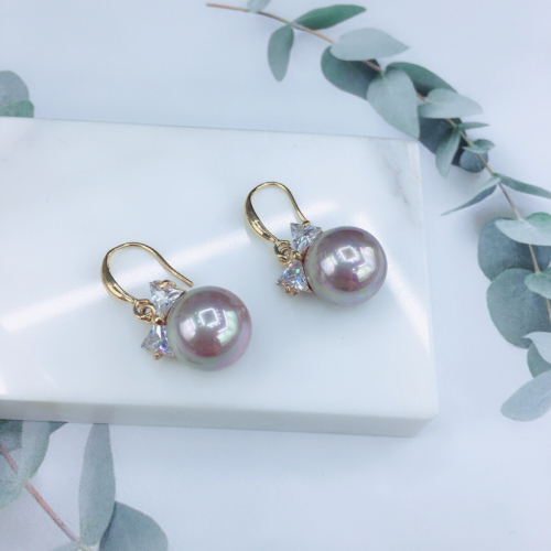 韩版锆石领结潮时尚金色淡紫耳环女气质白色耳钩长款个性百搭网红