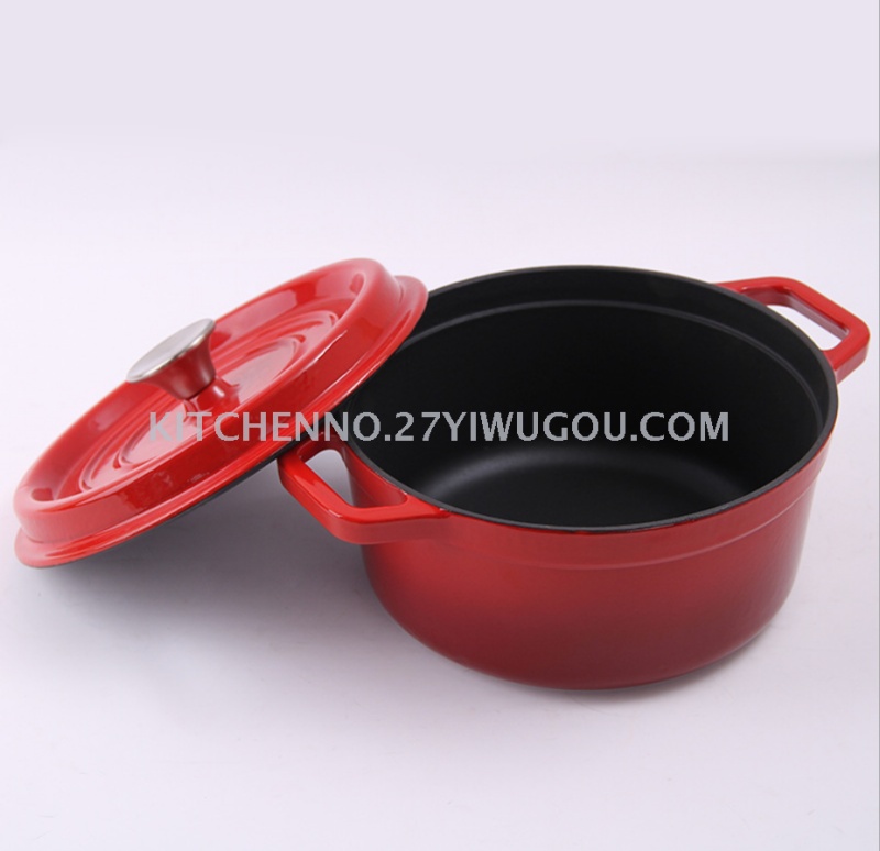 Cast iron enamel pot soup pot thickened double ear multi-functional stew pot enamel pig iron boiler range universal