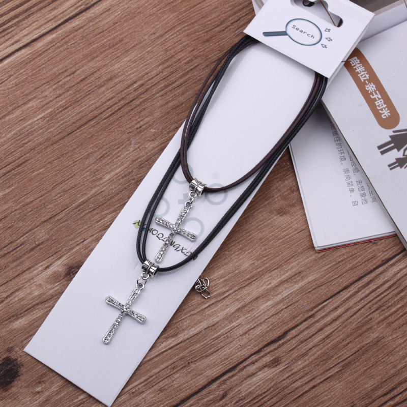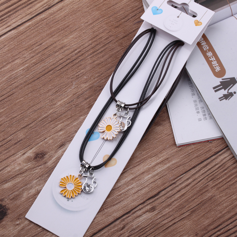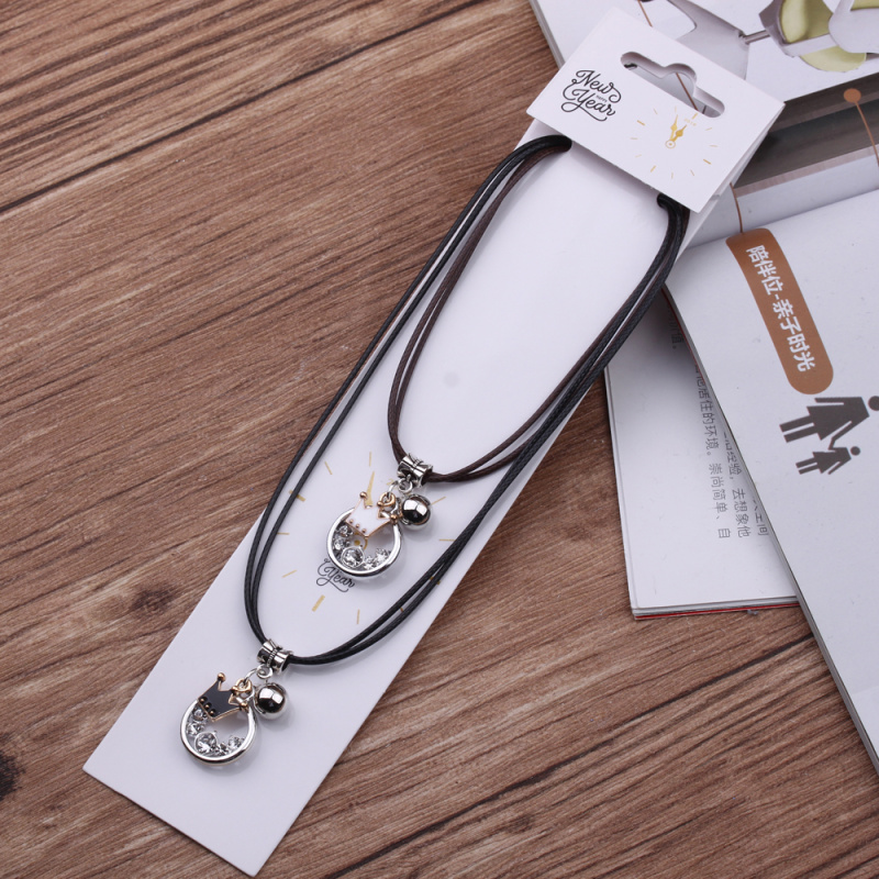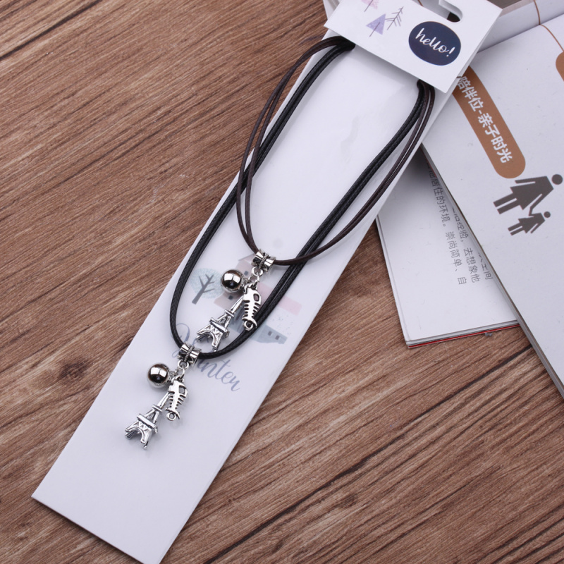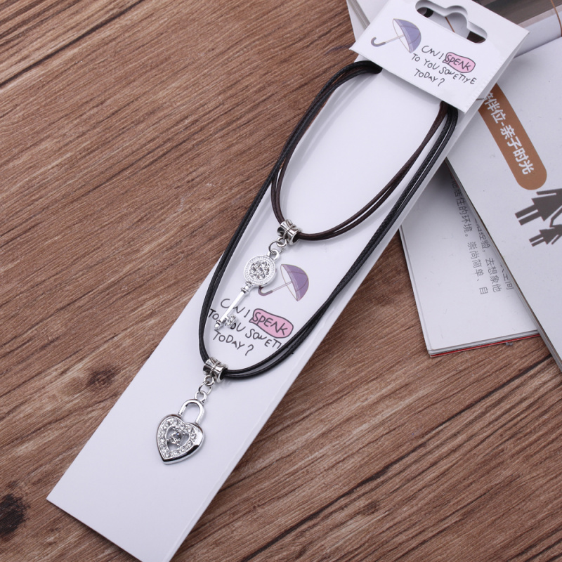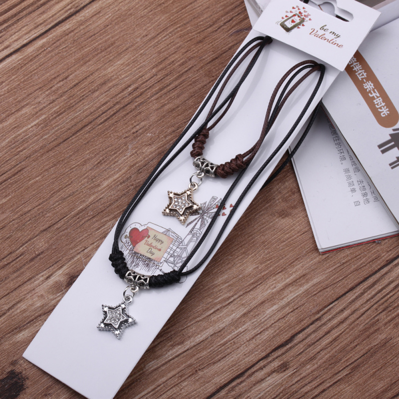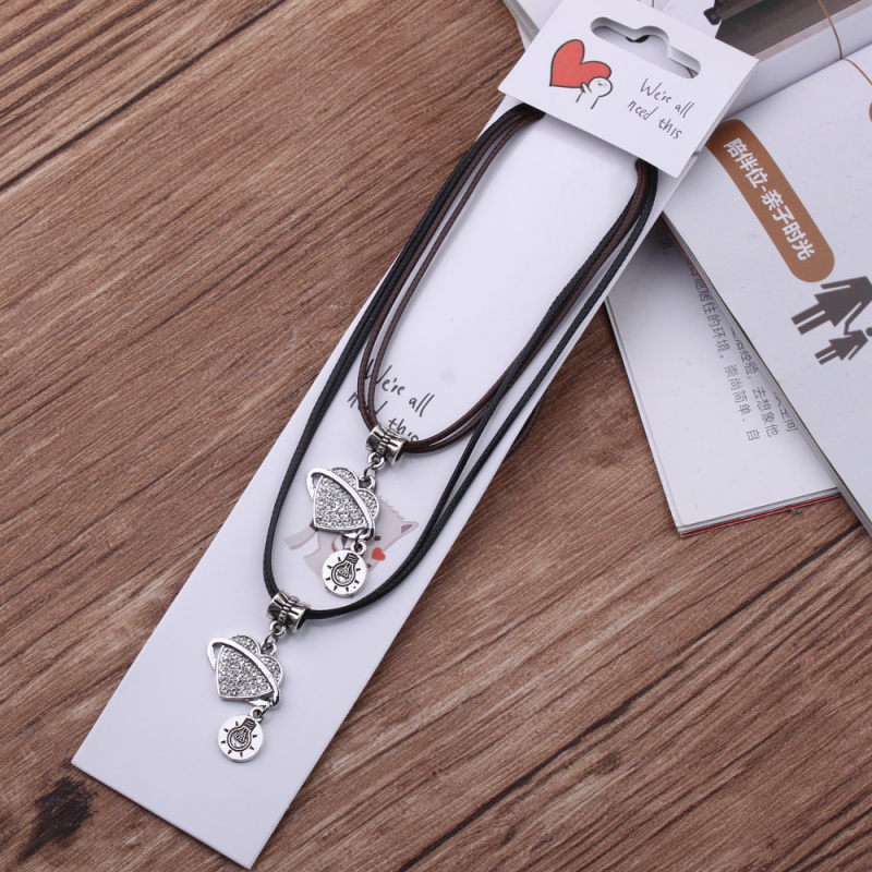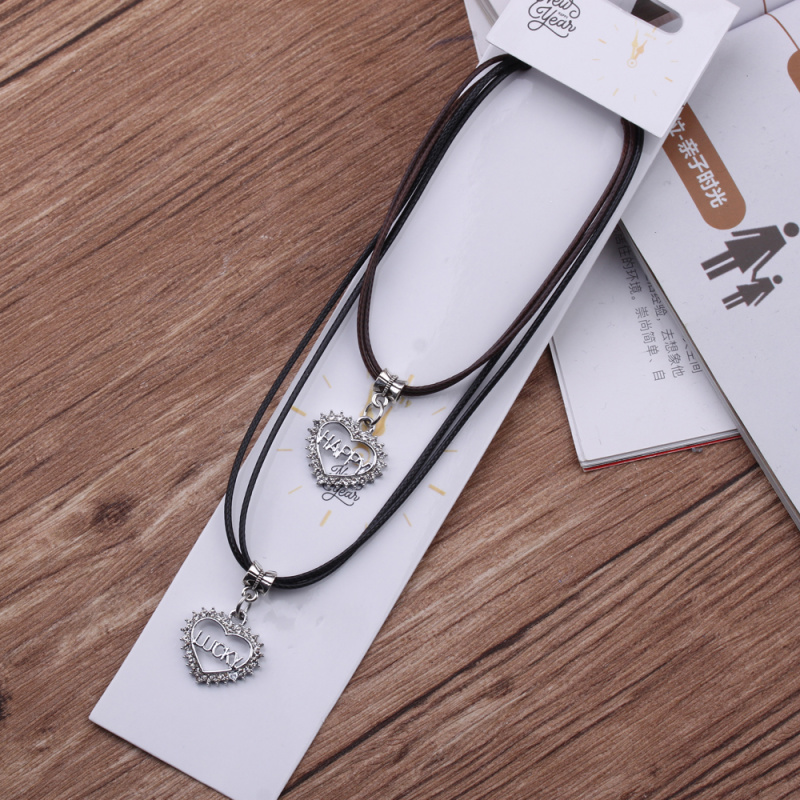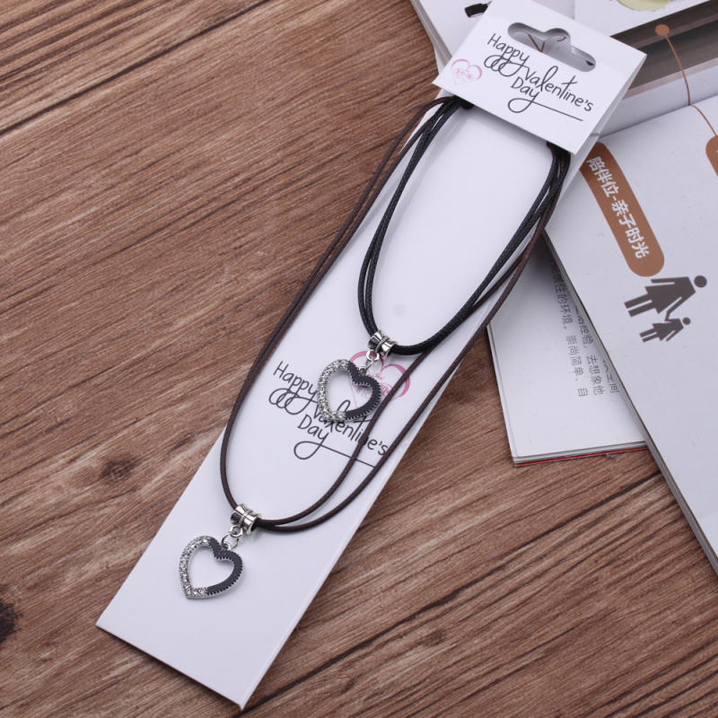 10 yuan store supply japanese and korean leather rope couple necklace alloy peach heart pendant 2 pack necklace male and female student jewelry