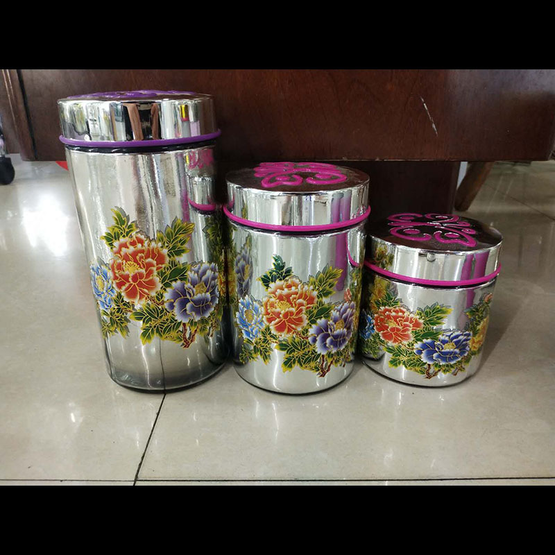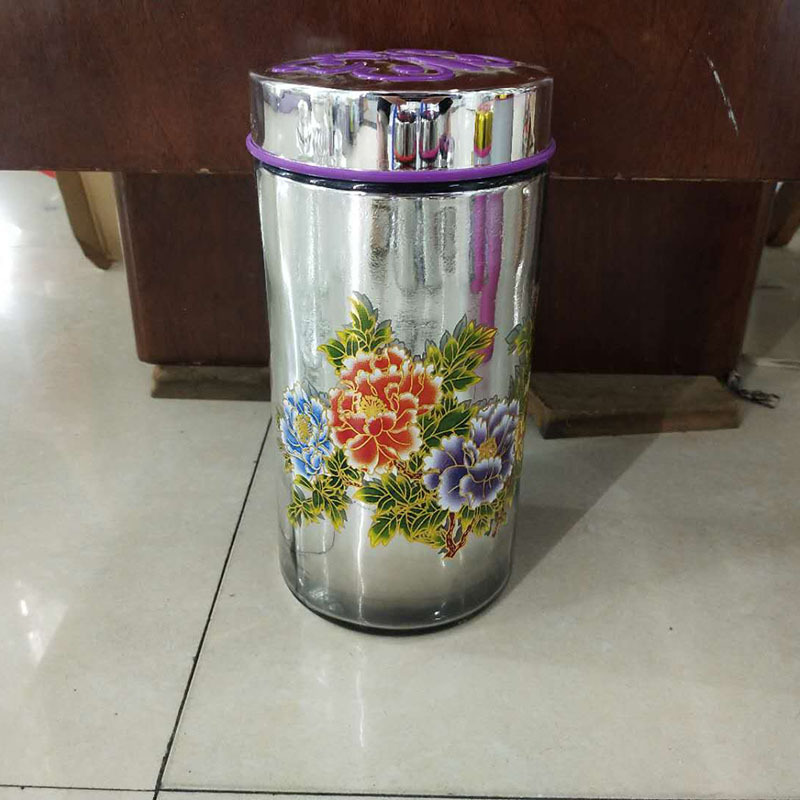 factory direct sales exquisite hand-painted peony glass storage jar spray color painting handmade glass sealed can