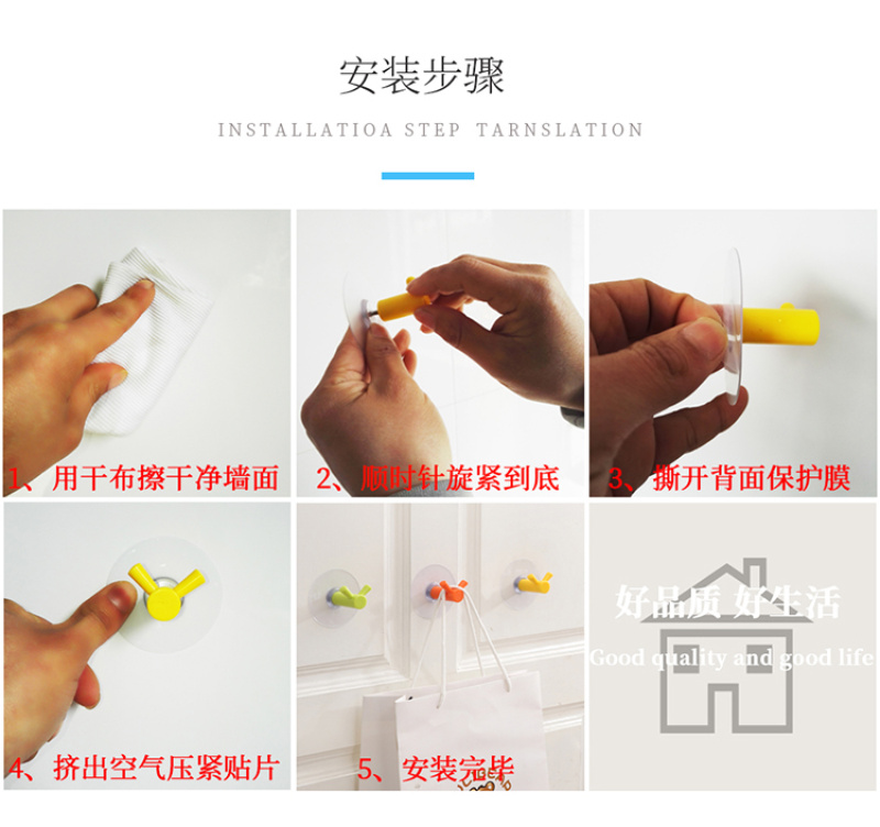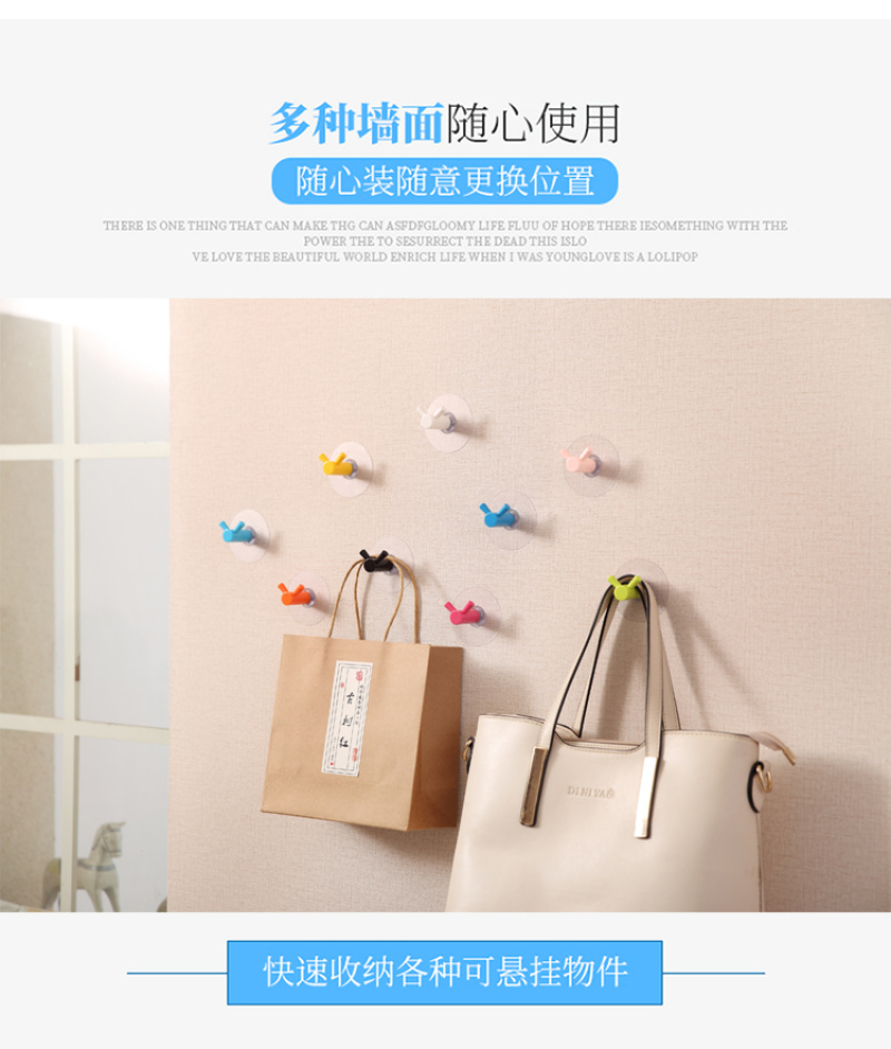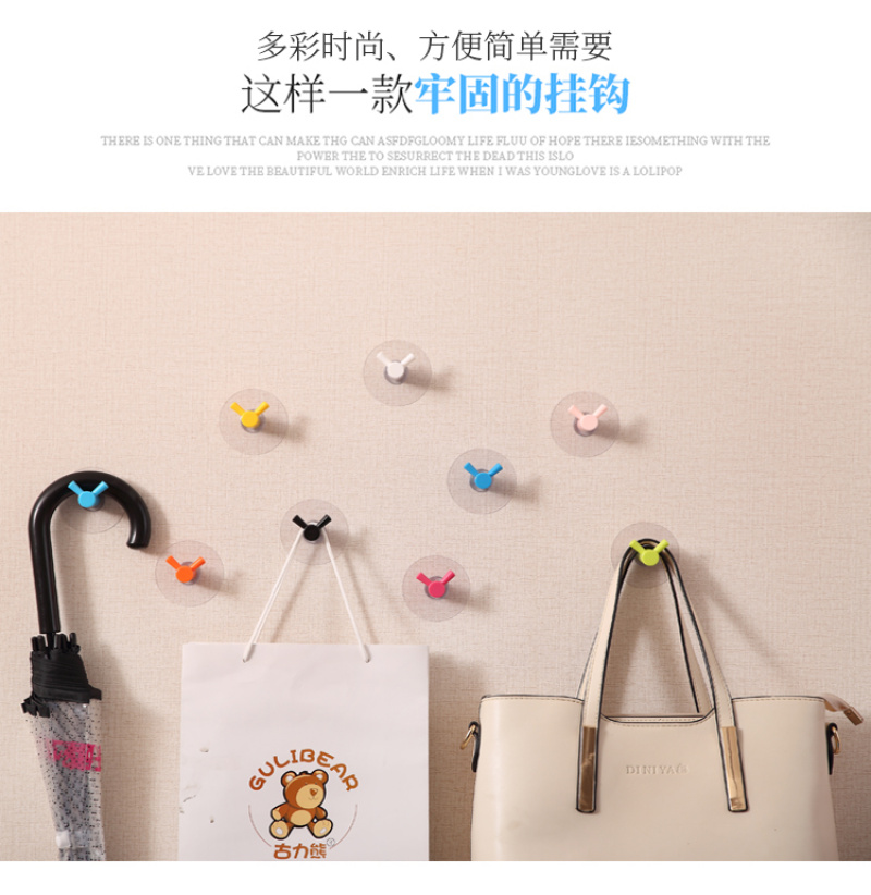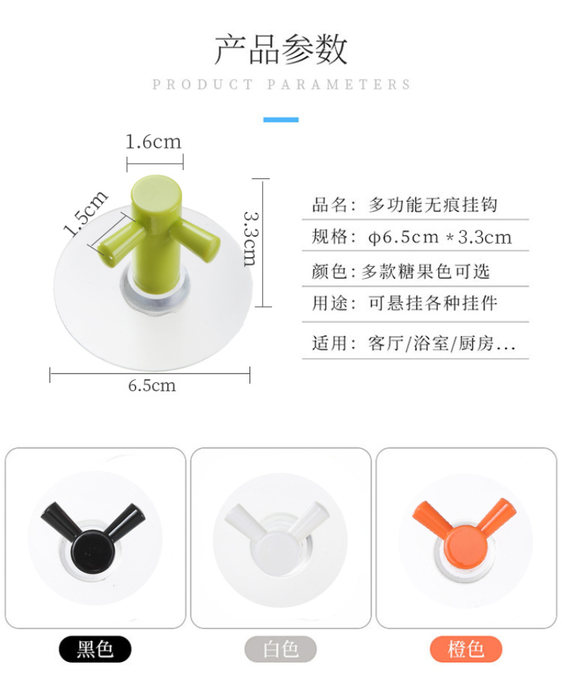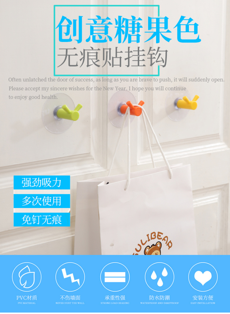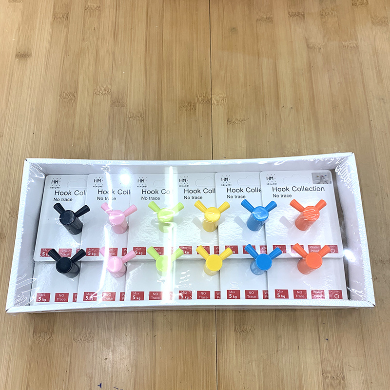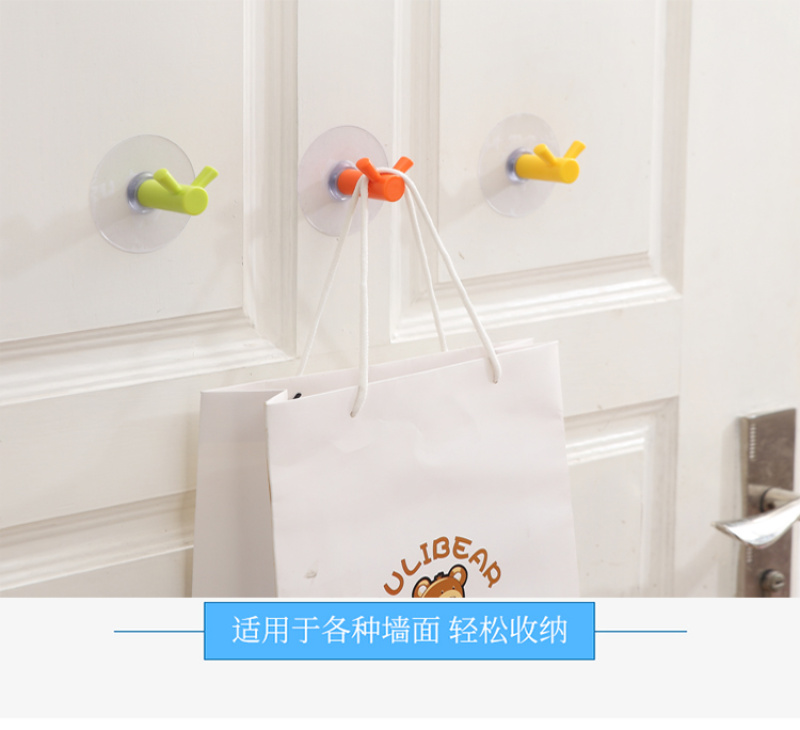 Double Hook Strong Traceless Hook Candy Color No Punching behind the Door Kitchen Bathroom Bathroom Nail-Free Wall Sticky Hook