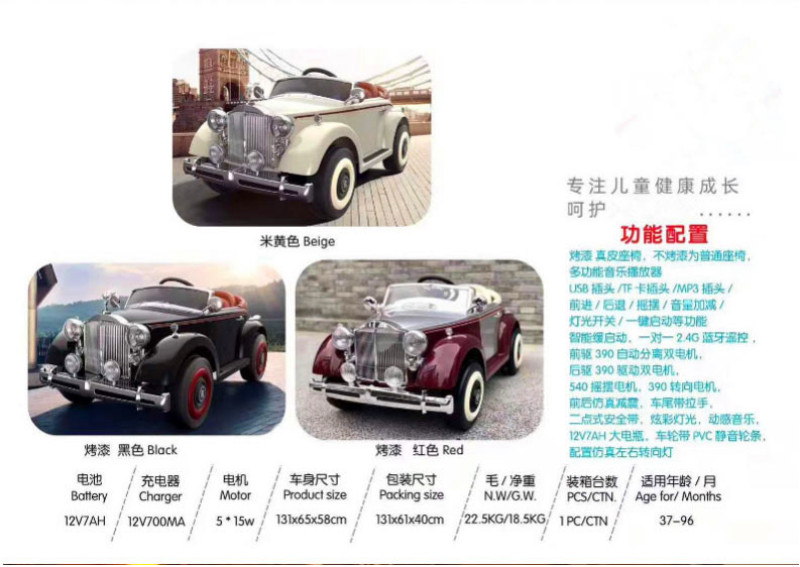Bird King - Children's Electric Car. Colors: Beige, Red, BlackThis product is primarily supplied to export companies and directly purchased by foreign businesses. Our factory is a production enterprise with the right to independently import and export. We can offer FOB Tianjin Port, accept US dollars, and provide OEM sample processing and branding services! The company's brand trademarks are: "Bird King" and "Oralma".