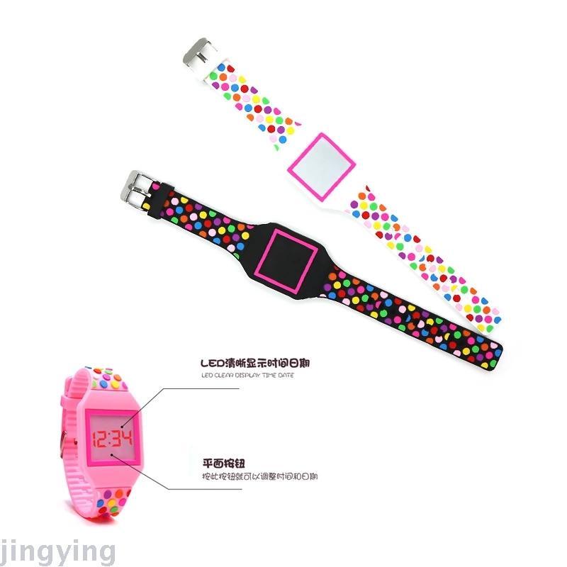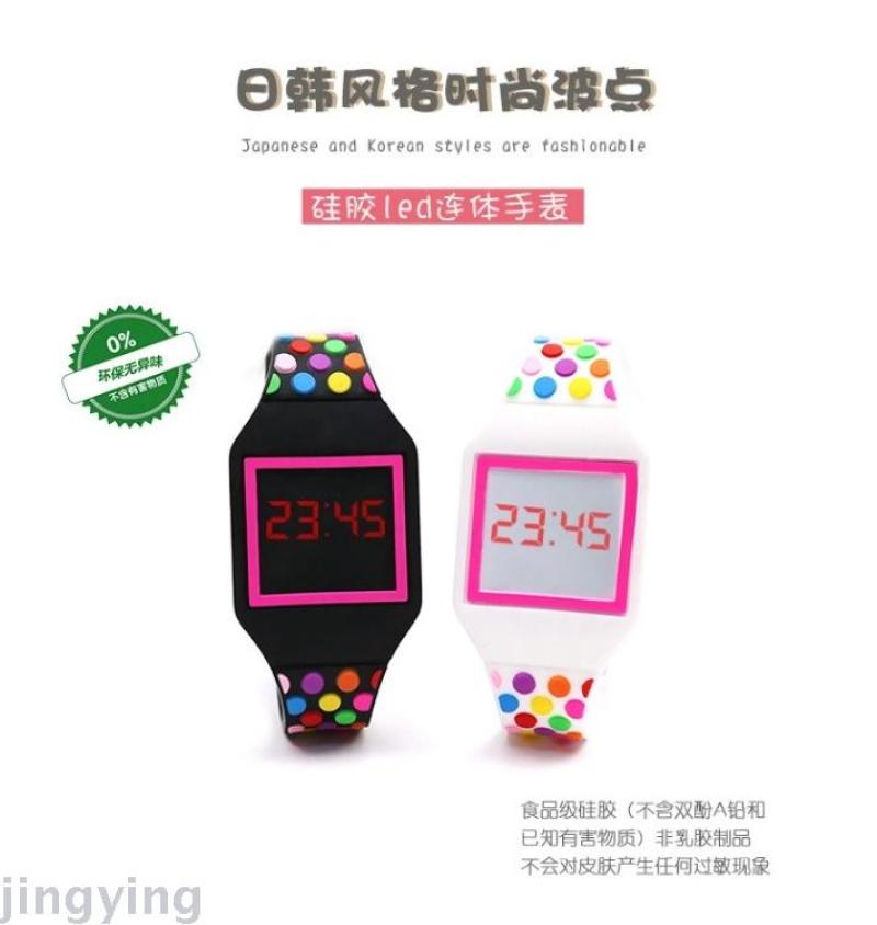 Factory Direct Sales Customized Casual Sports Student Epoxy Silicone LED Electronic Watch Currently Available Polka Dot One-Piece Watch