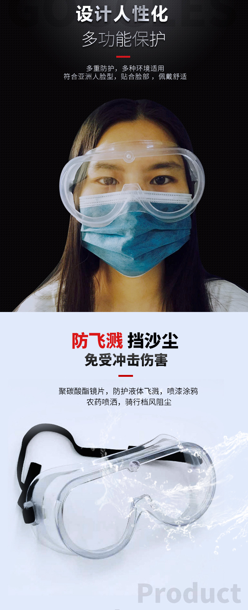 Eyewear anti-droplet anti-splash anti-dust anti-fog transparent protective glasses without hole fully closed protective eye mask spot