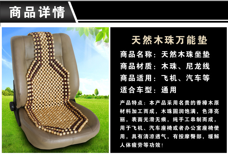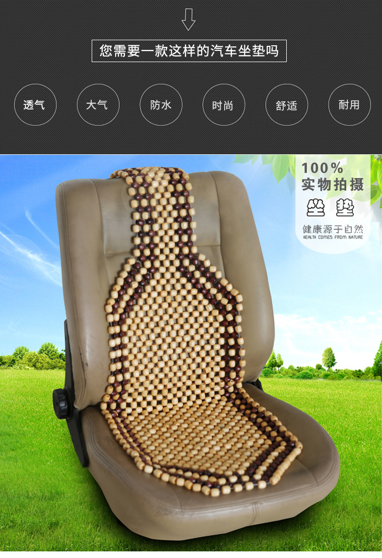 This product is made from high-quality raw wood materials, with round and full wood beads, bright colors, smooth and flawlessly smooth surface, and is hand-made. It is used as a car seat or office chair cushion, providing cool breathability, massaging the buttocks, and relieving human fatigue.