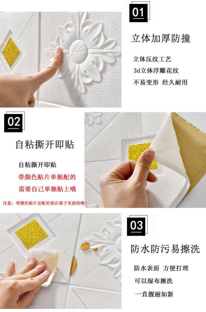 3d wall stickers ceiling roof stickers foam soft bag waterproof bedroom cozy tv background wallpaper self-adhesive
