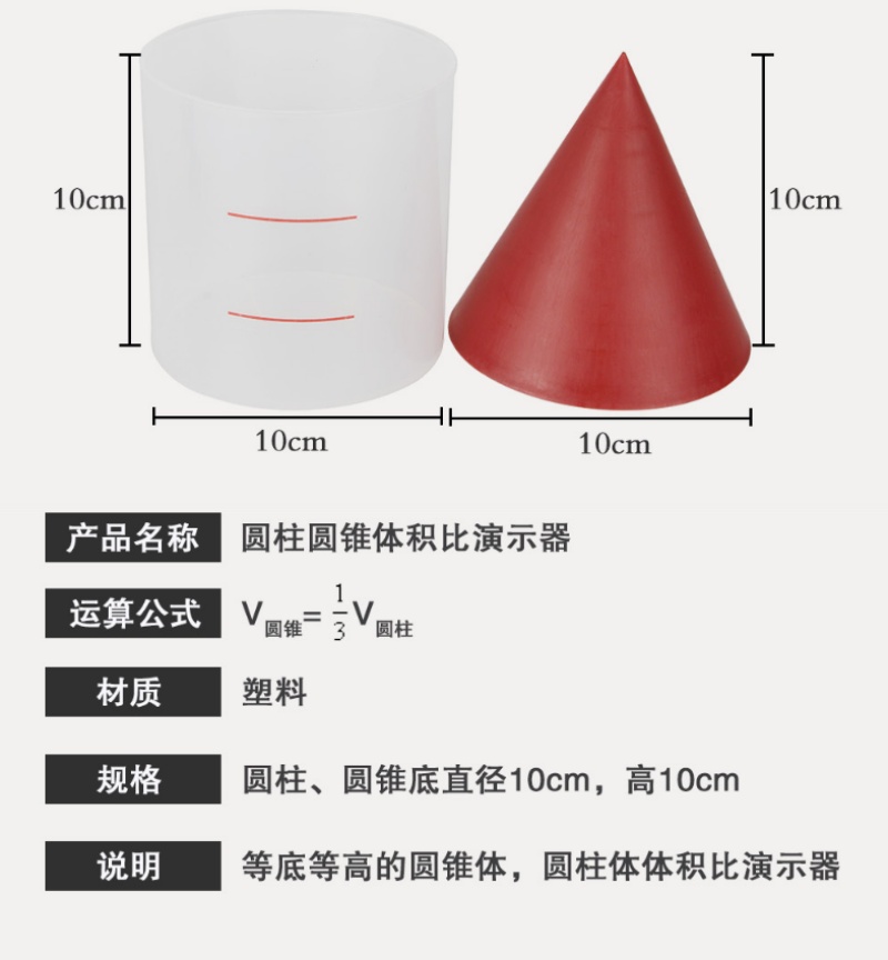 [10cm Cylinder Cone Volume Ratio] Equal Bottom and Equal Height Transparent Cylinder Cone Primary School Mathematics Teaching Aids