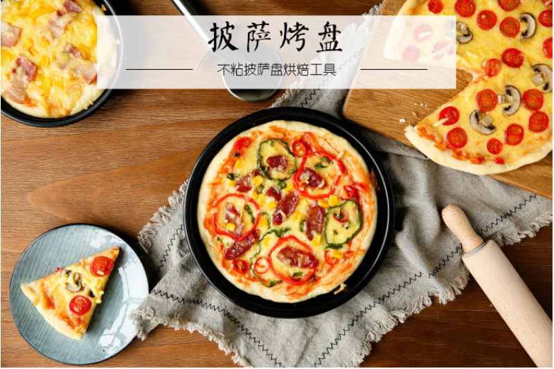 About Product:Brand: wangfa product category: cake mold specification: round material: Carbon Steel application: suitable for making pizza and other baked foods with various flavors. It is preferred to thicken carbon steel, which is durable, high temperature resistant, uniform heat conduction, good performance, detailed process, non-stick layer of the whole body, non-stick treatment inside and outside the whole mold, good anti-stick, easy to clean, easily removable mold. Integrated Molding Design, no welding, no gap, no dirt hiding, easy cleaning, Edge highlighting process, easy to take.