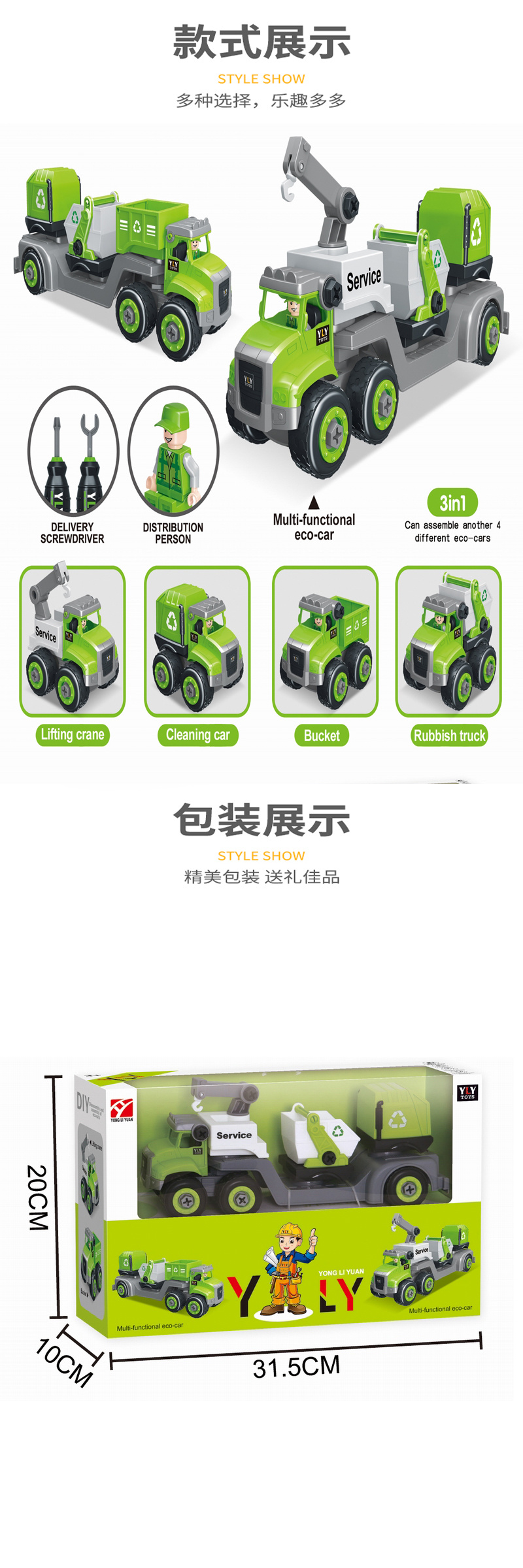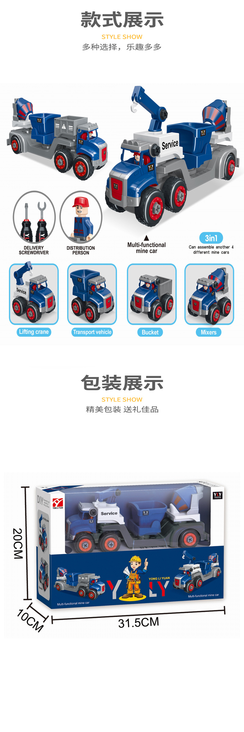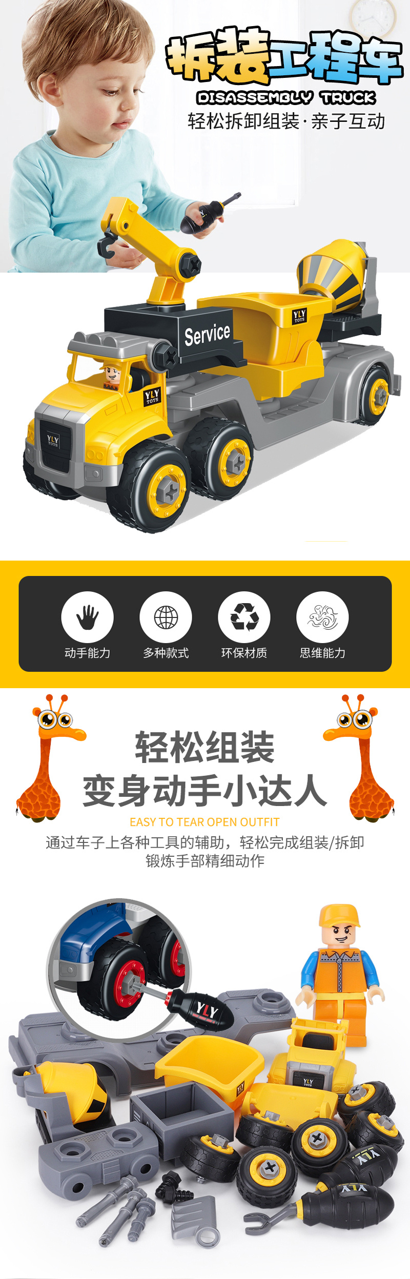 excavator crane garbage truck all kinds of car combination assembled boy twist screw detachable engineering vehicle toy cover