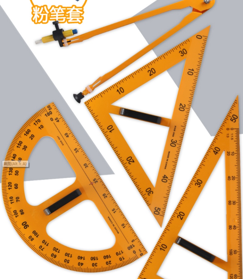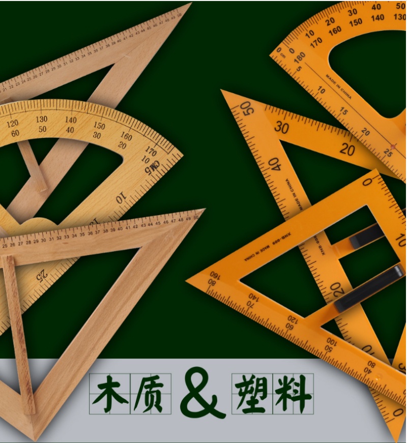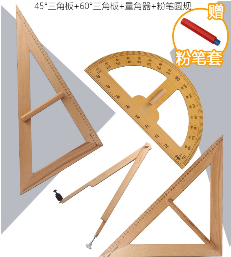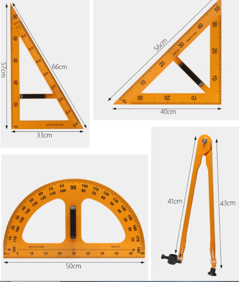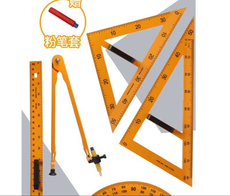 [Plastic Four-Piece Set] Large Triangular Plate Pair Set for Teaching Compasses Protractor