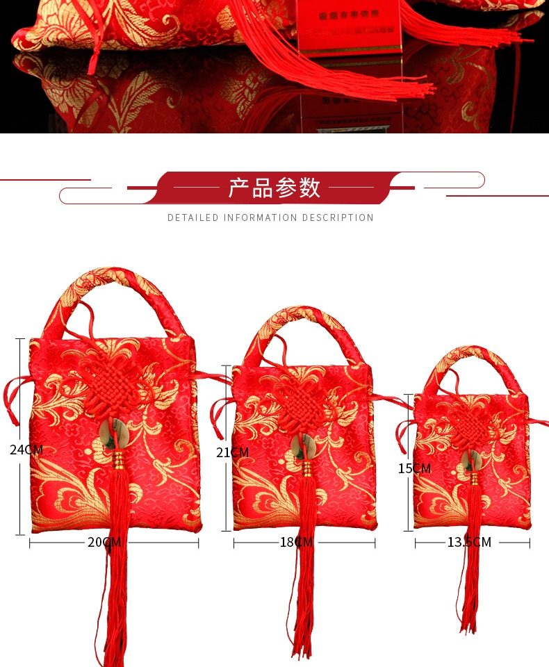 About Product:Brocade jade bag small size 13*15CM medium size 18*20CM large size 20*24CM