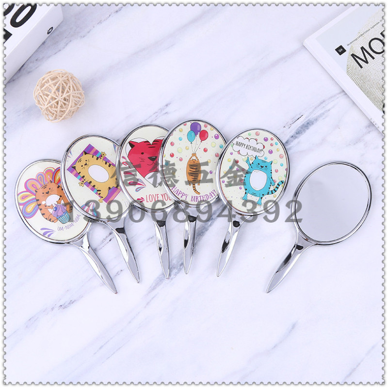 cartoon hand-held makeup mirror lovely soft cute internet celebrity square round girl portable portable dressing mirror makeup mirror