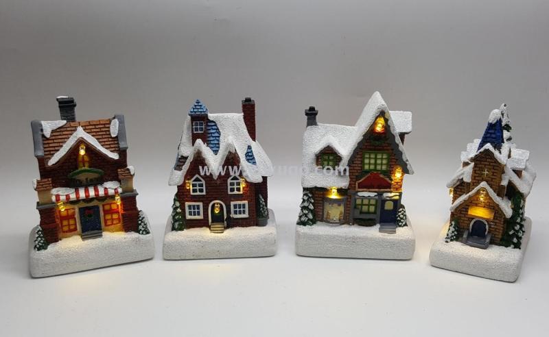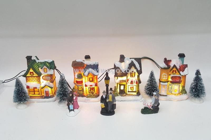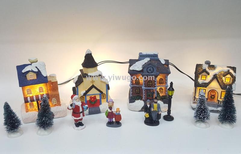 resin house combination suit led lights christmas tree ornaments