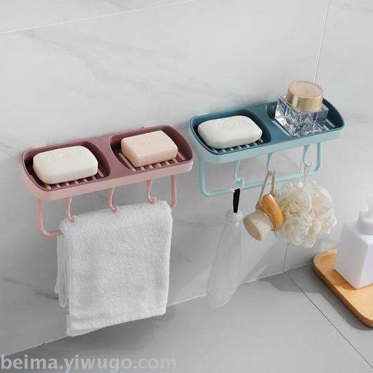 Soap box suction cup wall hanging household large double Soap box creative asphalt perforated toilet shelf