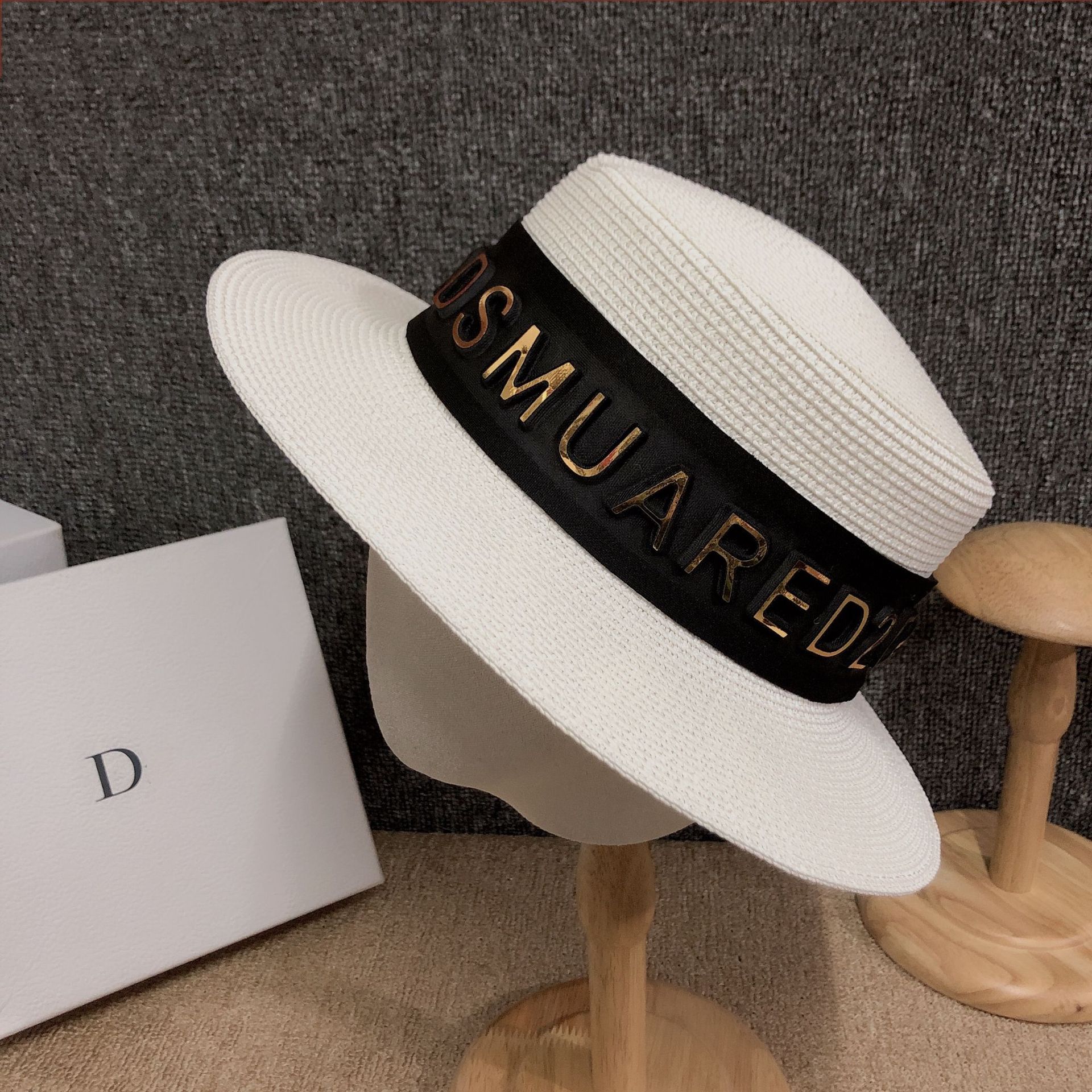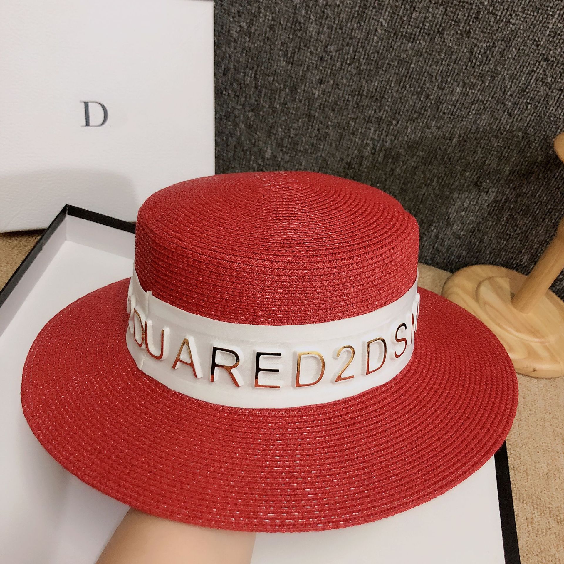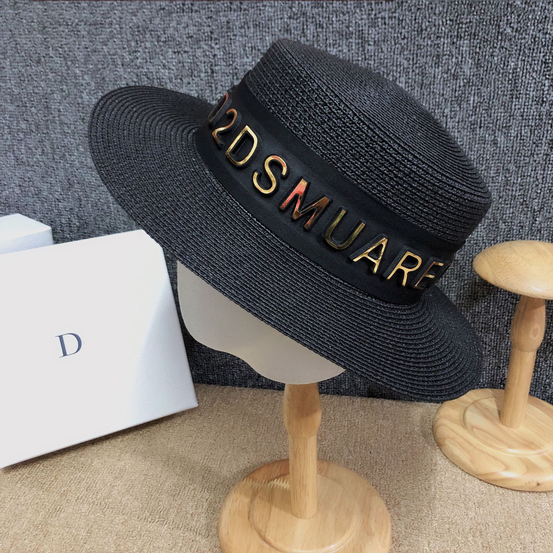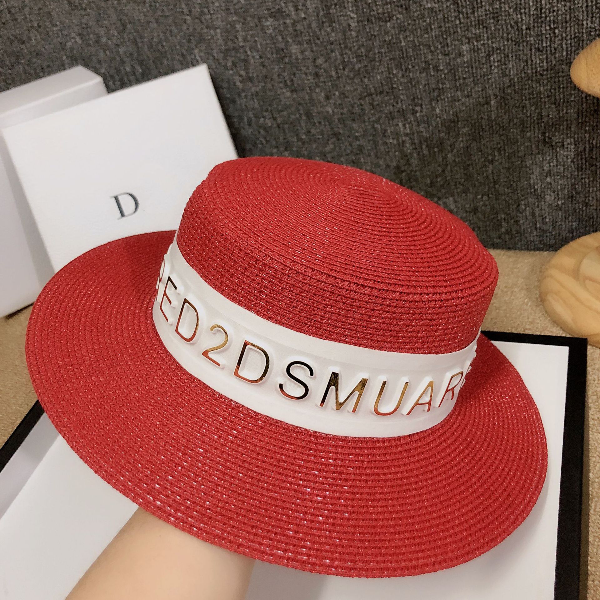 Korean version ins luxury summer hat custom 3D letter fashion European sunshade grass hat internet celebrity host hot product female