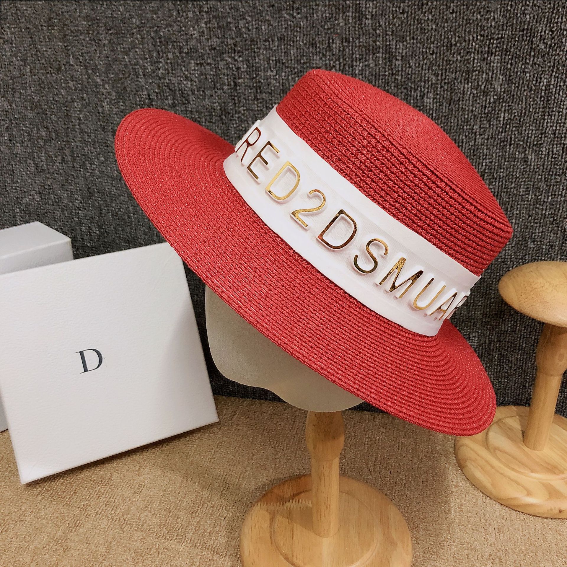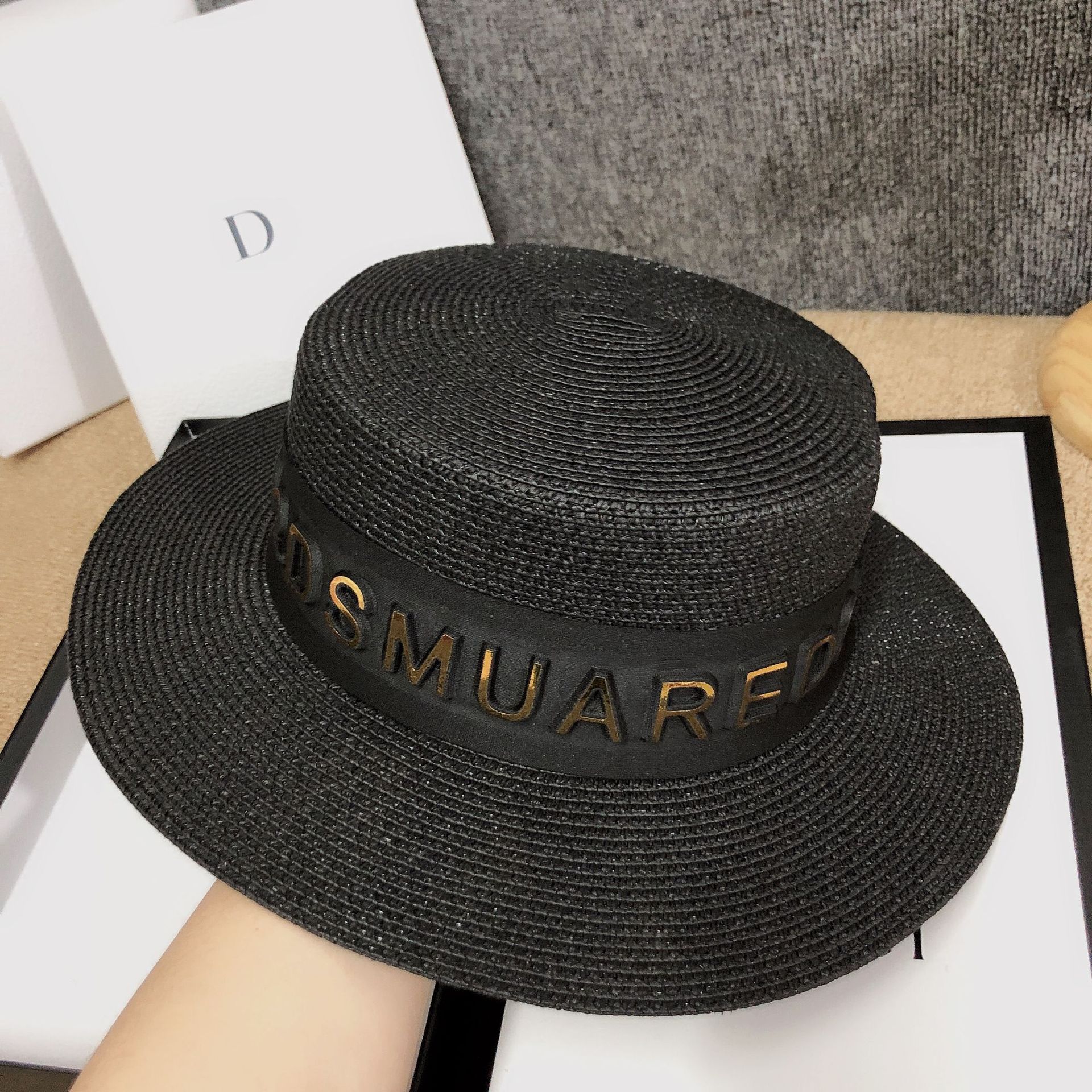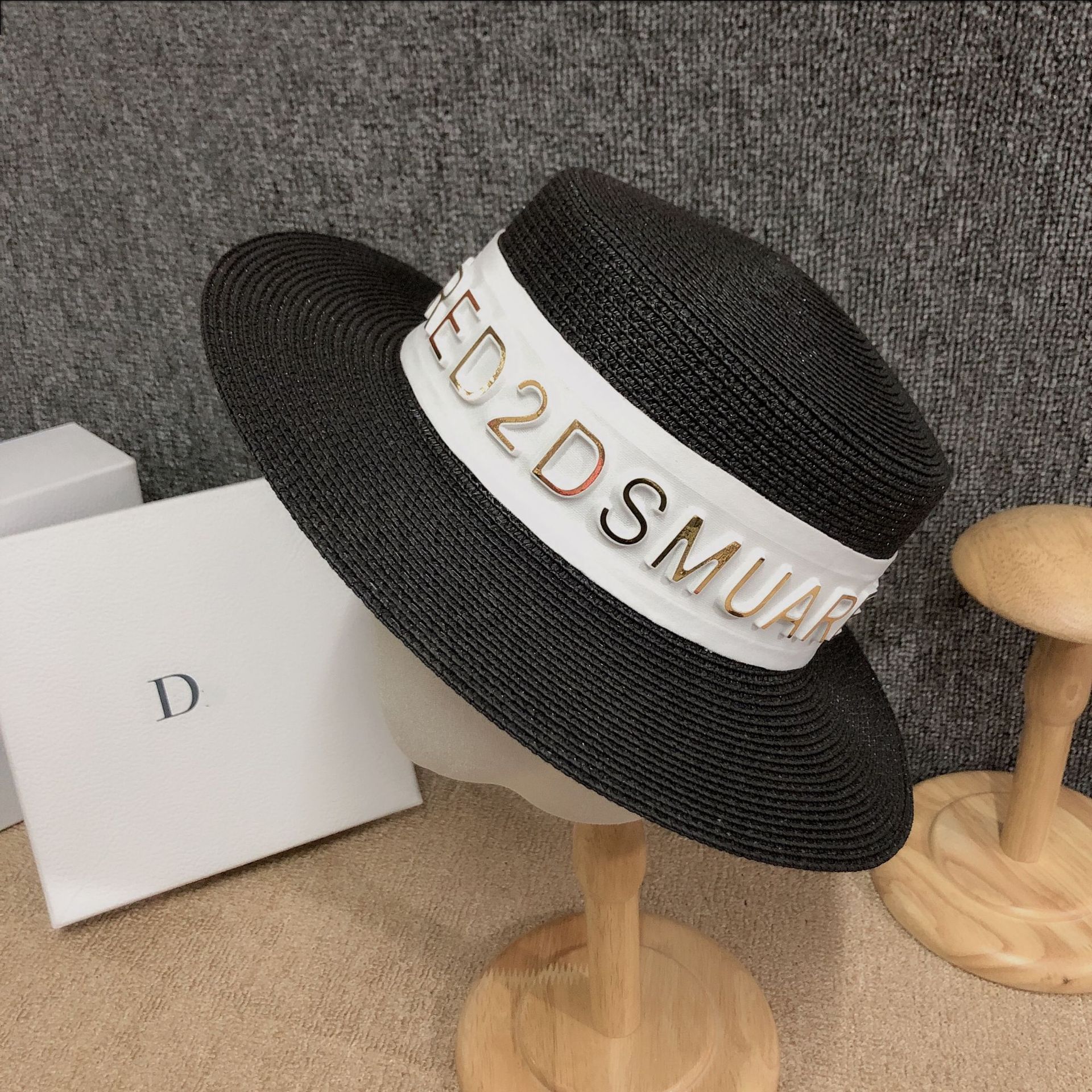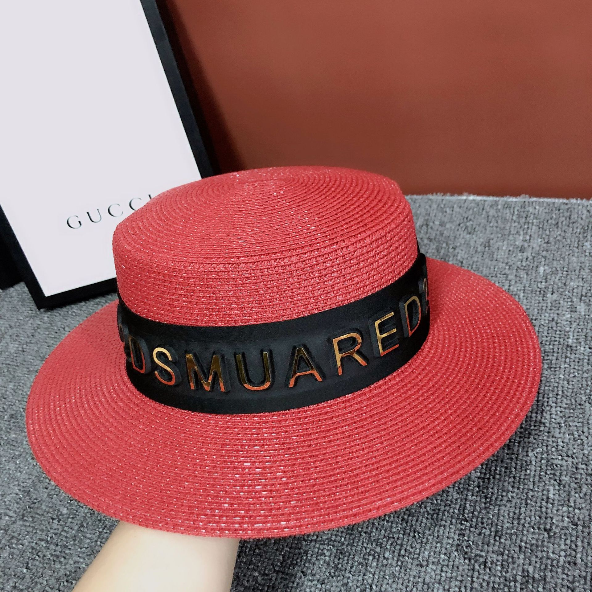 Korean version ins luxury summer hat custom 3D letter fashion European sunshade grass hat internet celebrity host hot product female