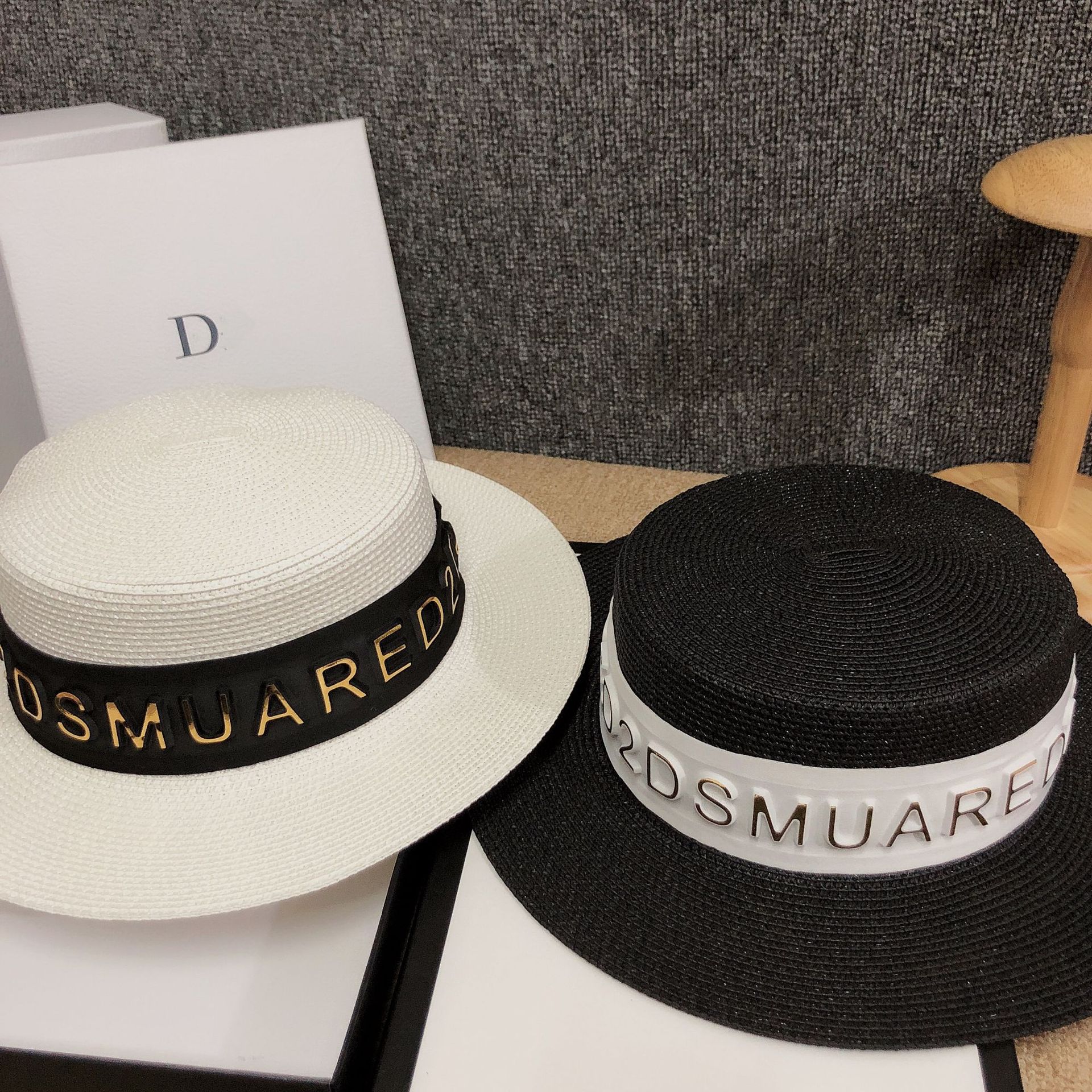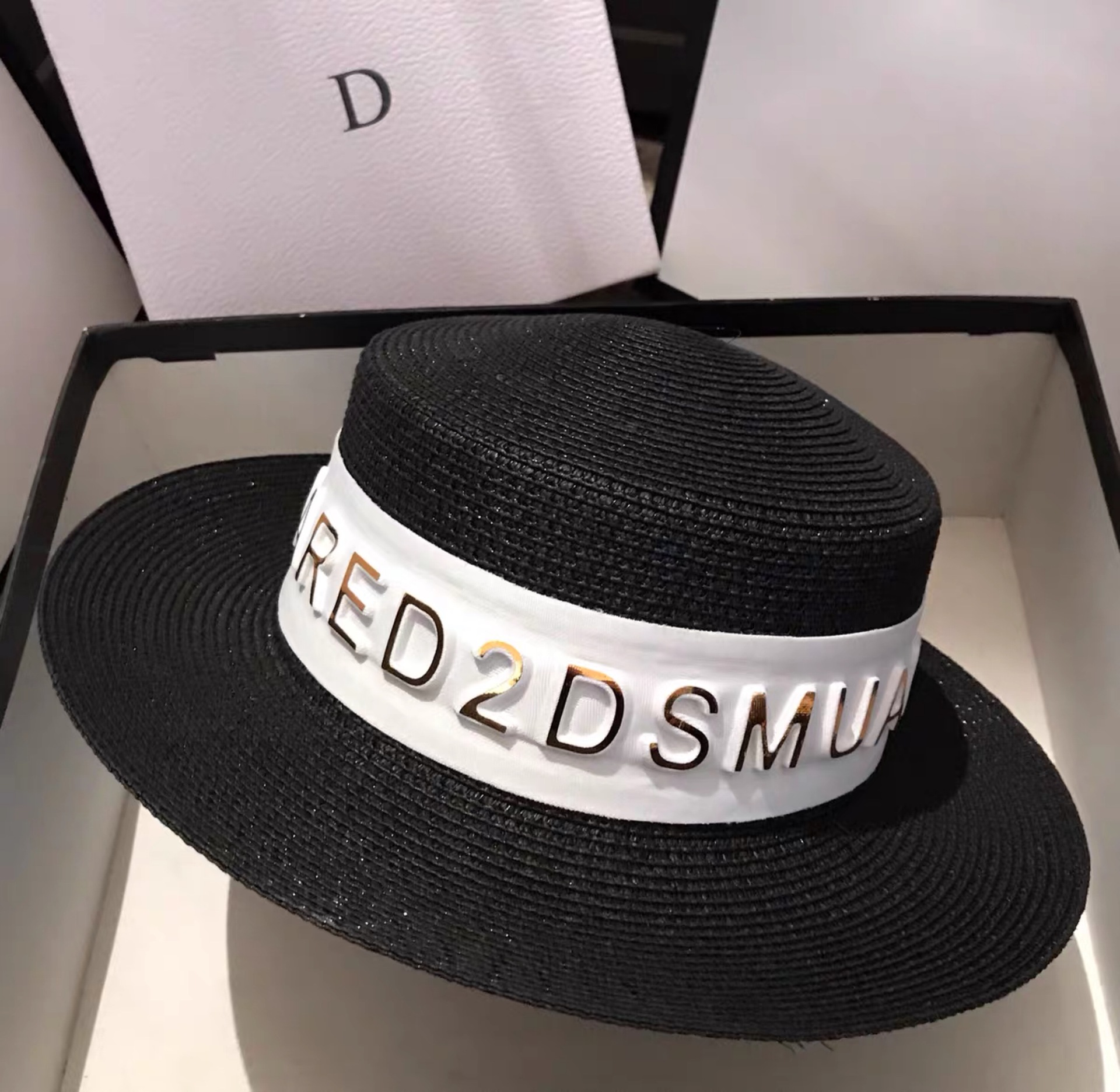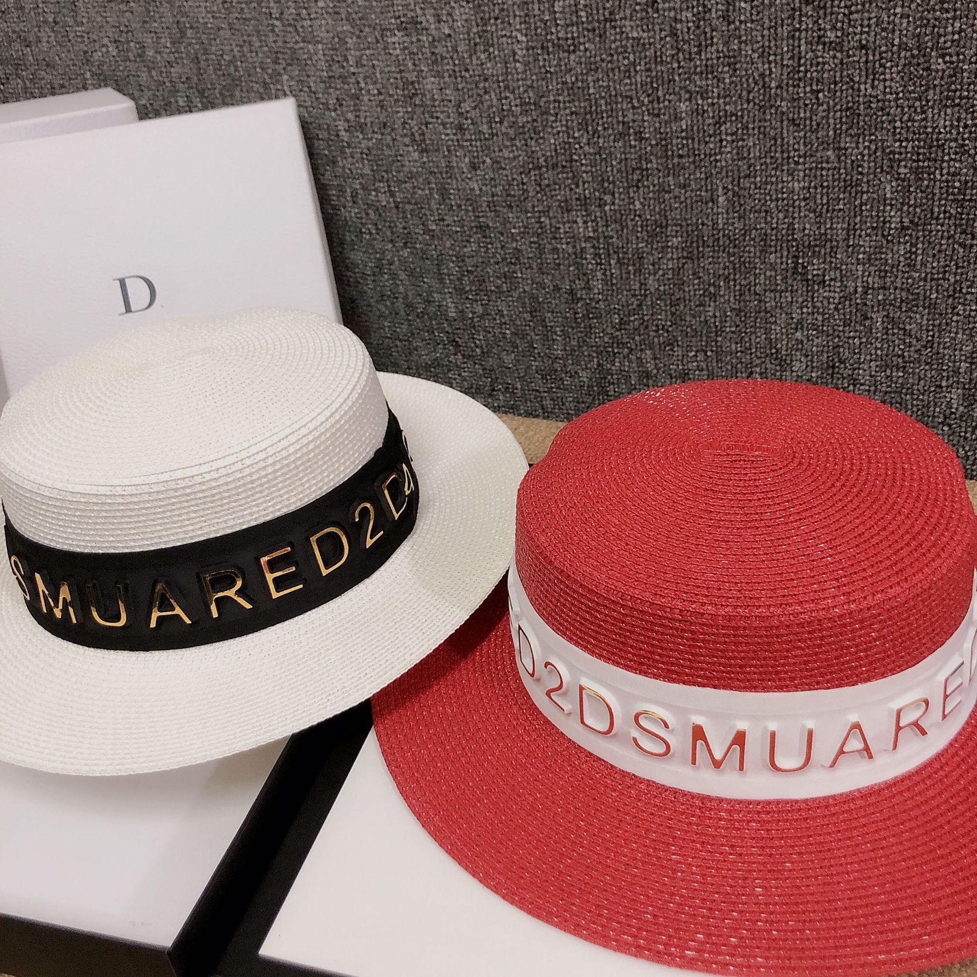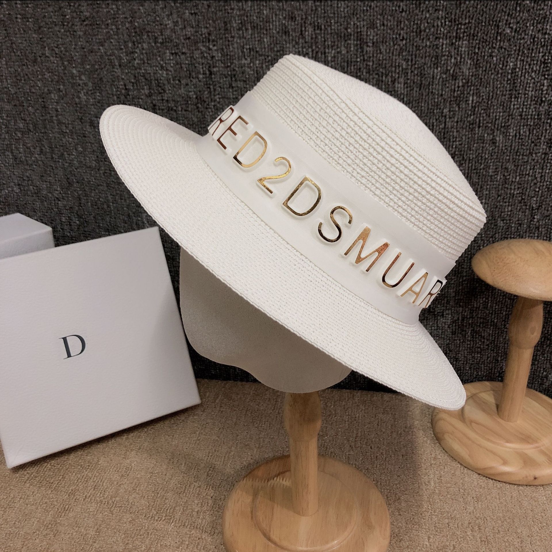 Korean version ins luxury summer hat custom 3D letter fashion European sunshade grass hat internet celebrity host hot product female