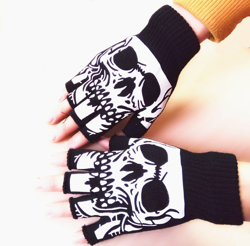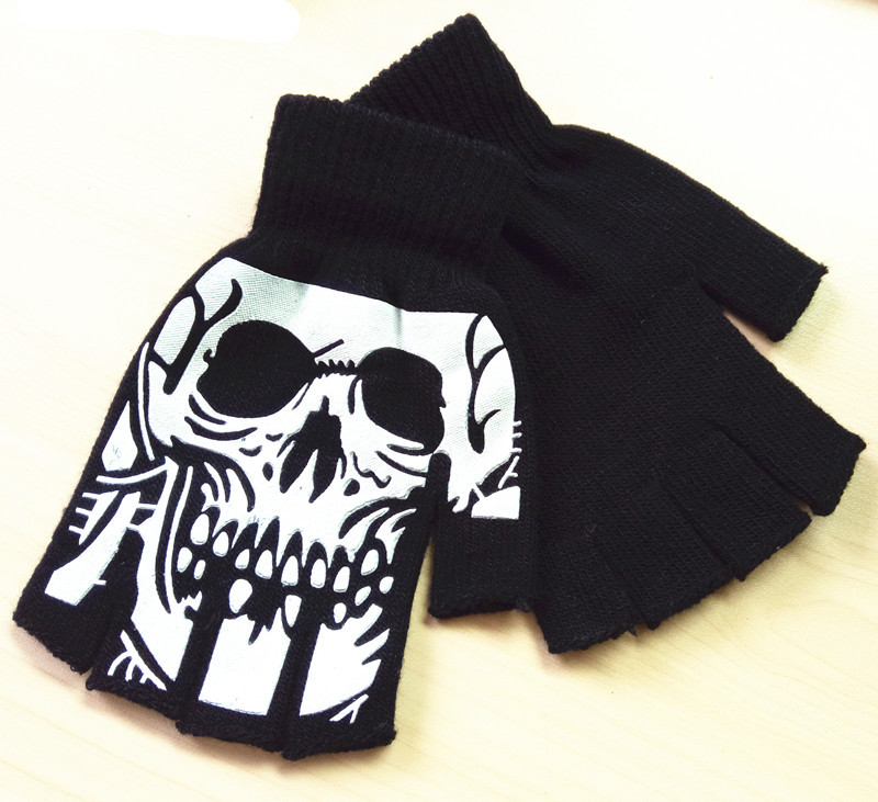 Product Name: Half-Finger Glove with Silhouette Skull Print