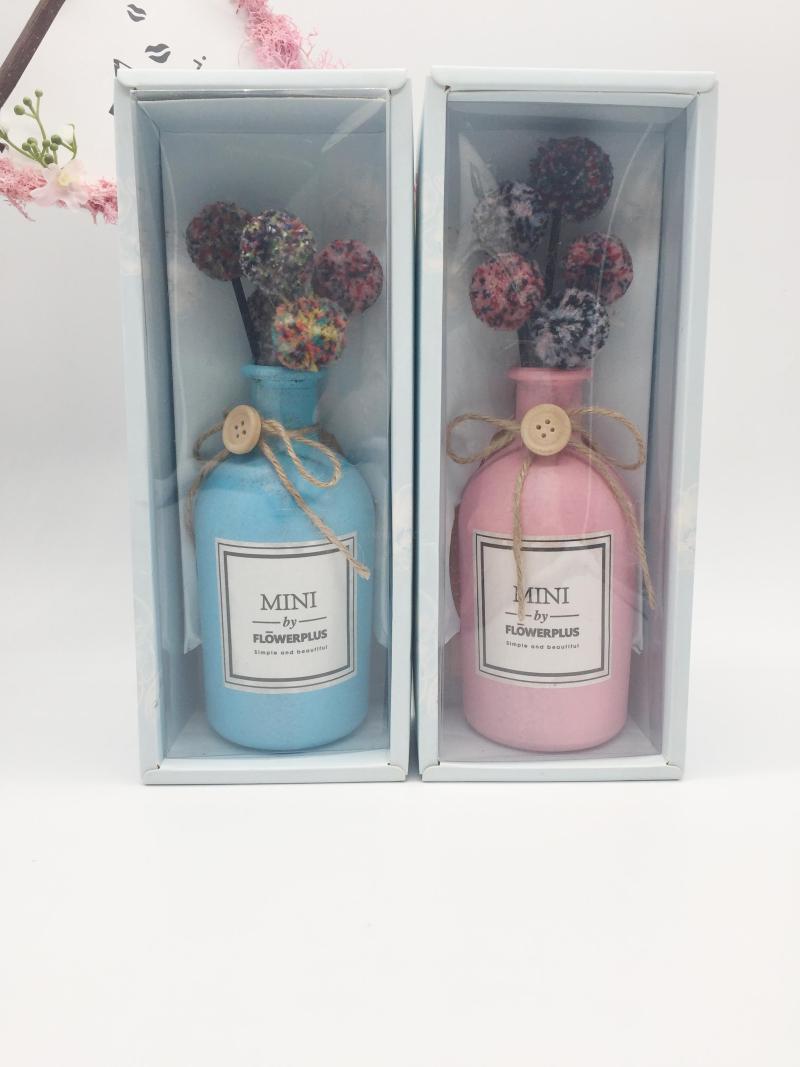 Scented Flower Arrangement Series without Fire l Round Bottle for Home Use Bedroom Scented Round Bottle in Two Colors: Blue. Pink