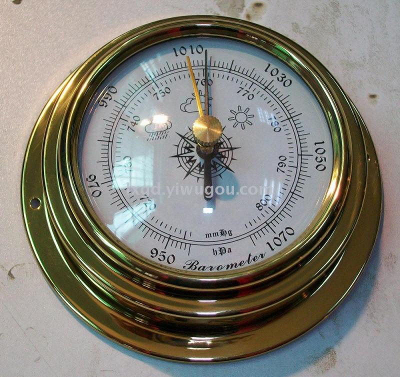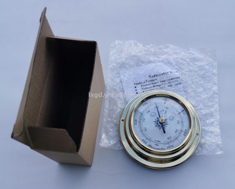 Product Materials: Brass shell (varnish after high-precision polishing), plastic bottom shell, acrylic plastic lens, precision gear drive mechanism barometer movement. Brass adjustment button, metal pointer.