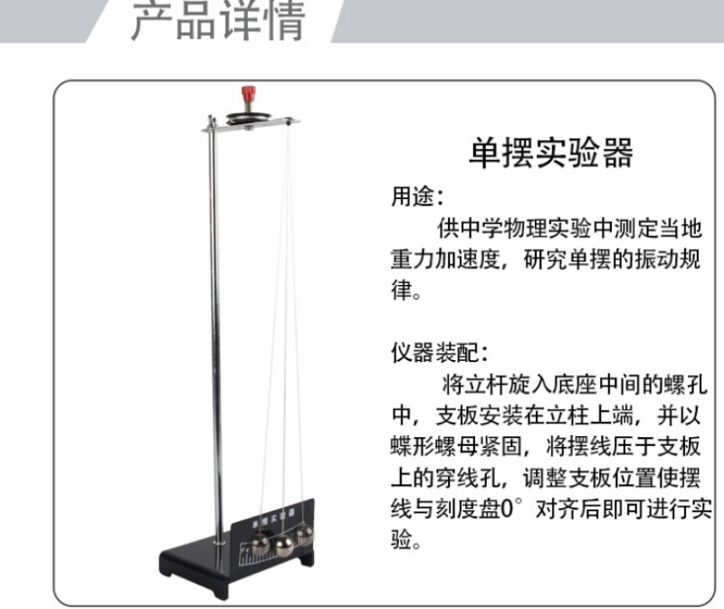 Single Pendulum Experimental Equipment Metal Base Metal Pole Adjustable swing Ball Height Physical Mechanics Teaching Instrument