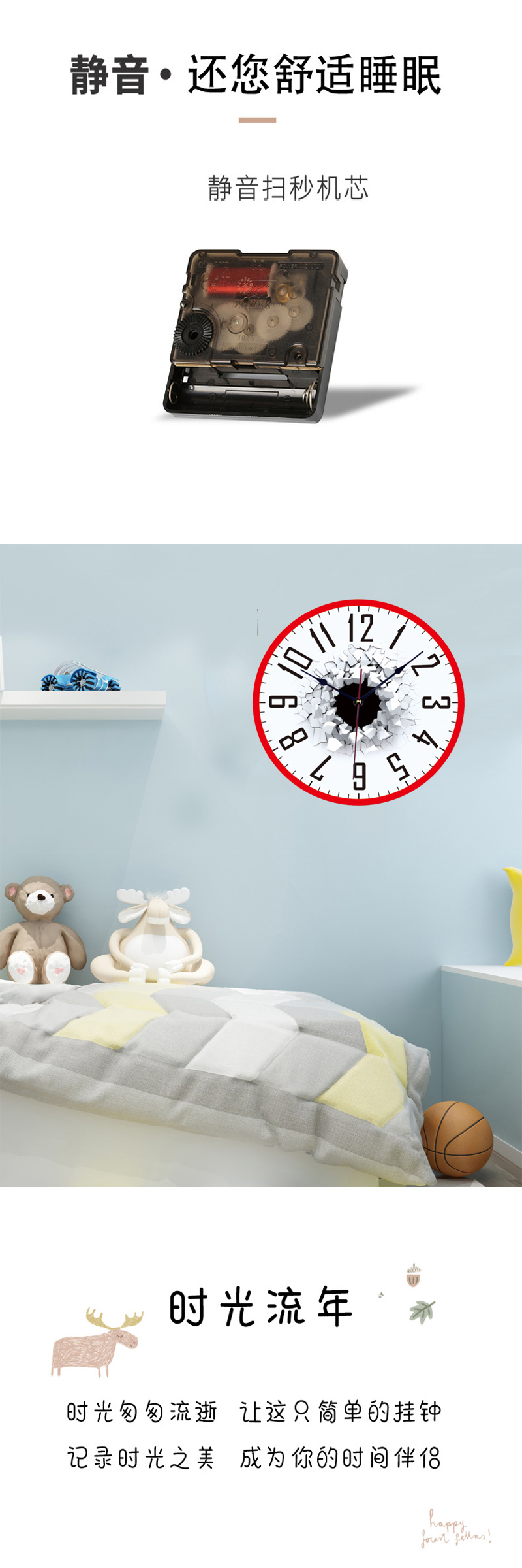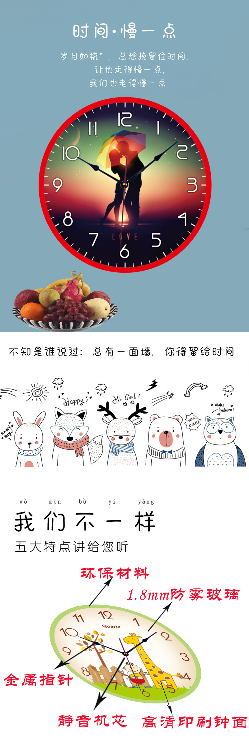 [12-inch 30cm] ultra-quiet creative cartoon wall clock simple modern and unique clock home living room clock