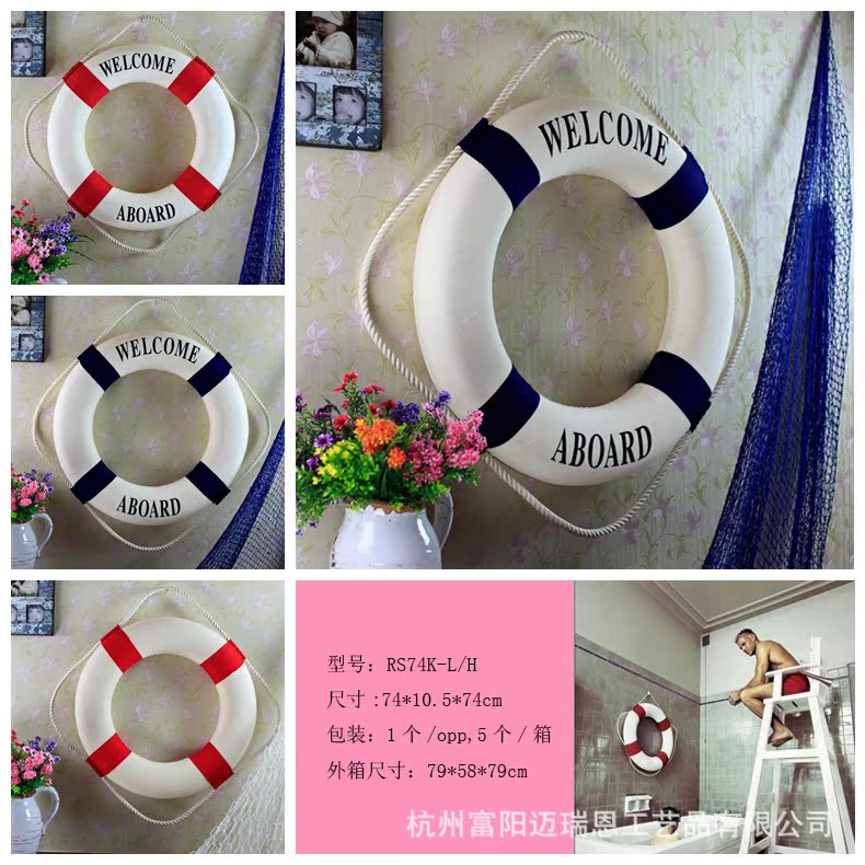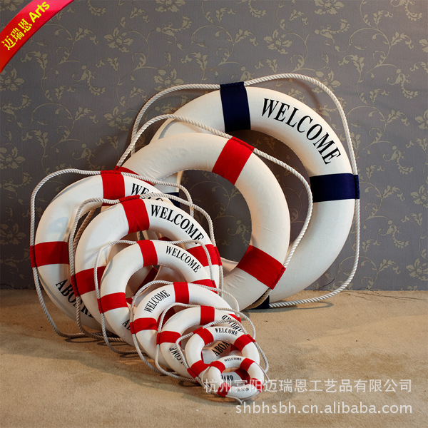 非常可爱的地中海风格救生圈挂饰。纯手工缝制,非常有味道。可以装饰在客厅,卧室,玄关等地。尺寸比较适中。