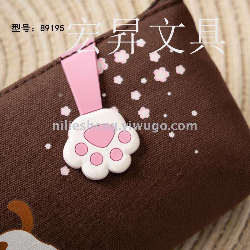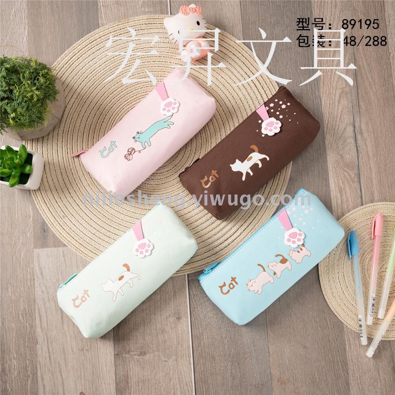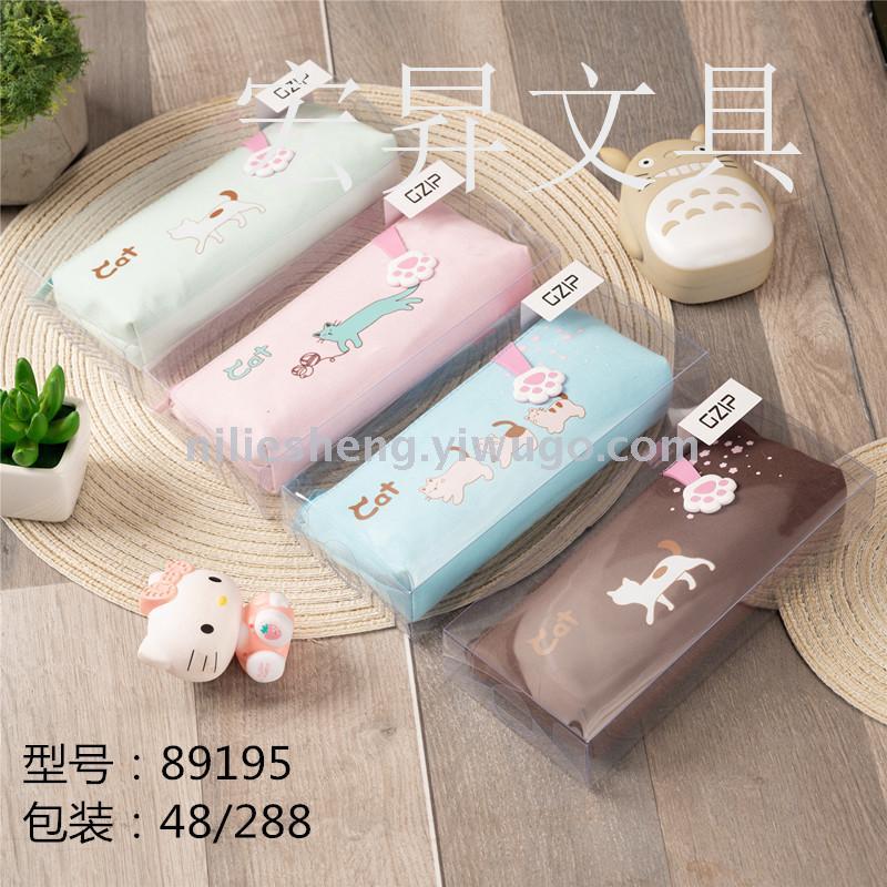 Cartoon cat Korean double pencil bag waterproof storage bag in large capacity Cartoon writing case storage box suction card pack