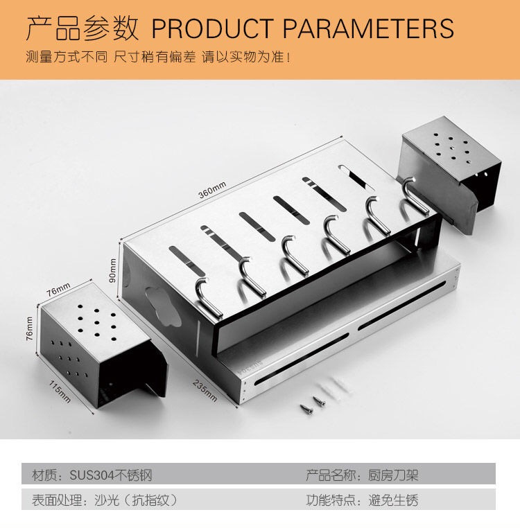 ●【Product Name】: 304 Stainless Steel Anti-Fingerprint Knife Holder