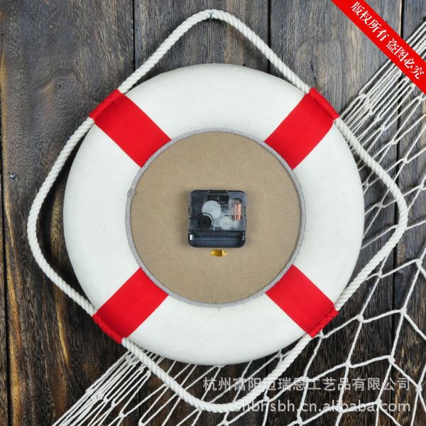非常可爱的地中海风格小挂钟。用了海洋味道非常浓郁的救生圈做造型,此钟尺寸比较小,适合空间较小的空间,比如儿童房的装饰,也可以多个搭配做装饰,效果很赞。本款时钟刻度用的是麻绳编织的水手结,非常有感觉~