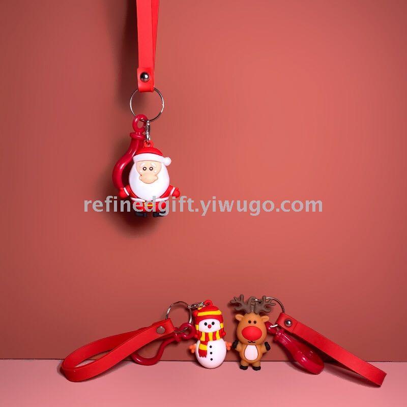 cute cartoon pvc three-dimensional soft rubber santa claus snowman deer epoxy keychain cars and bags gift pendant