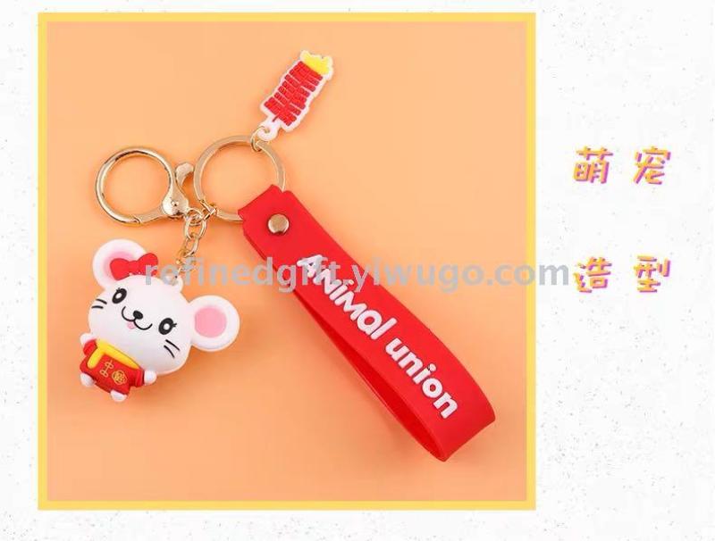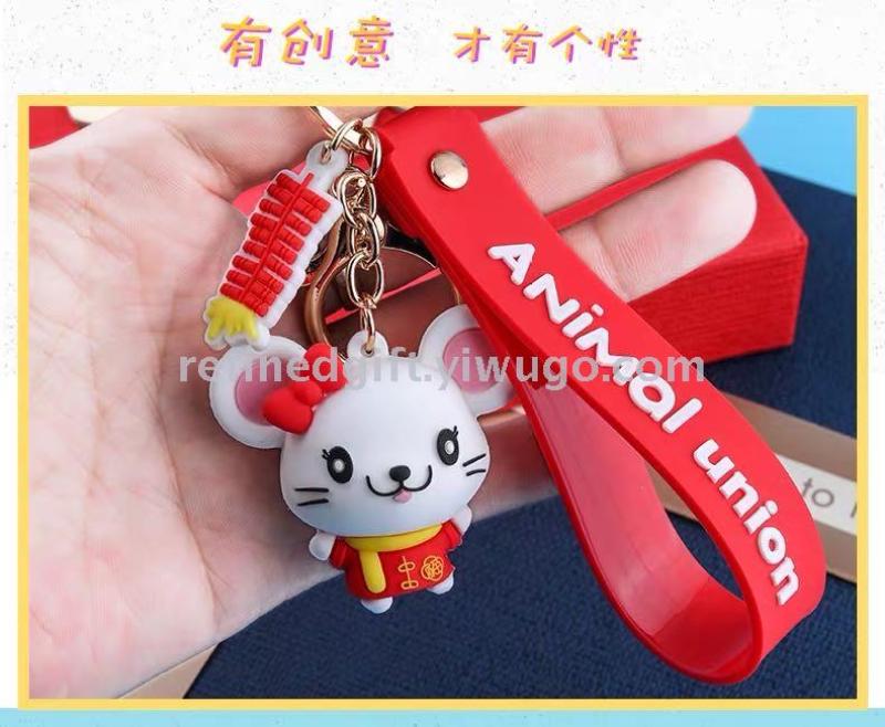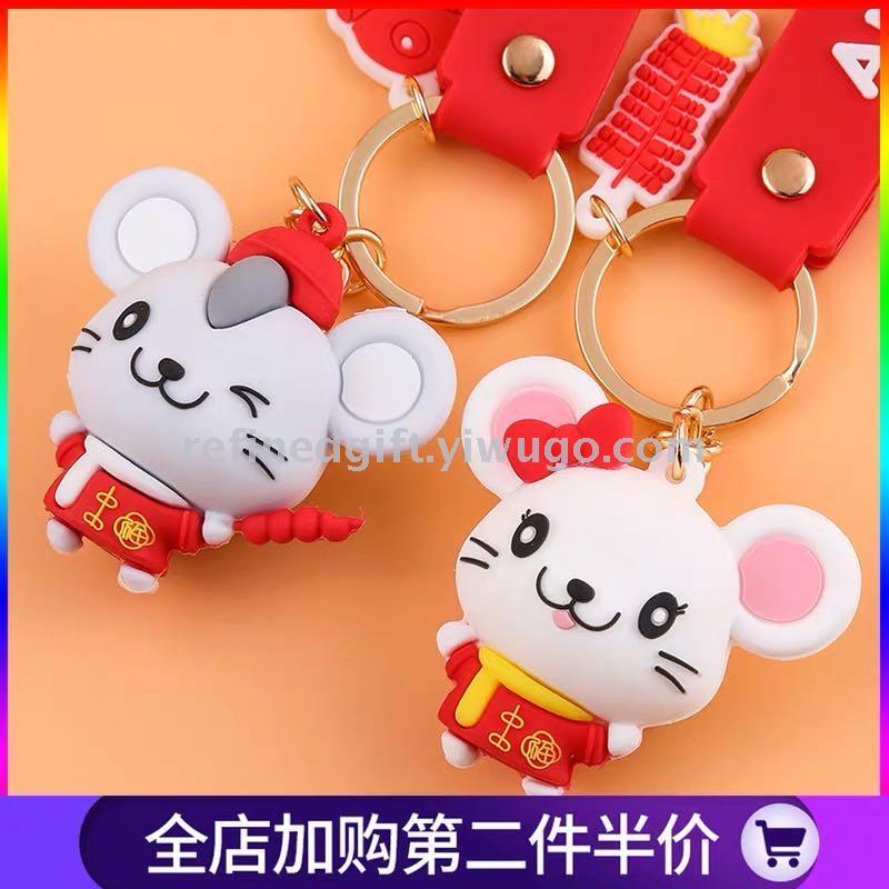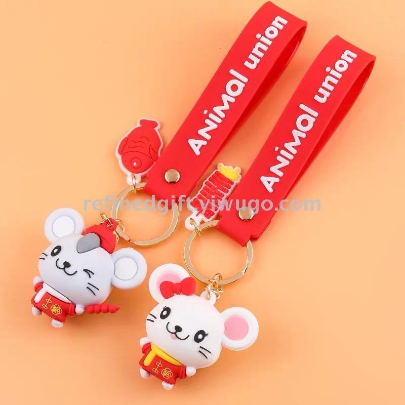 cute vinyl mouse keychain cartoon pendant three-dimensional doll year of the rat new year gift personalized lettering gift