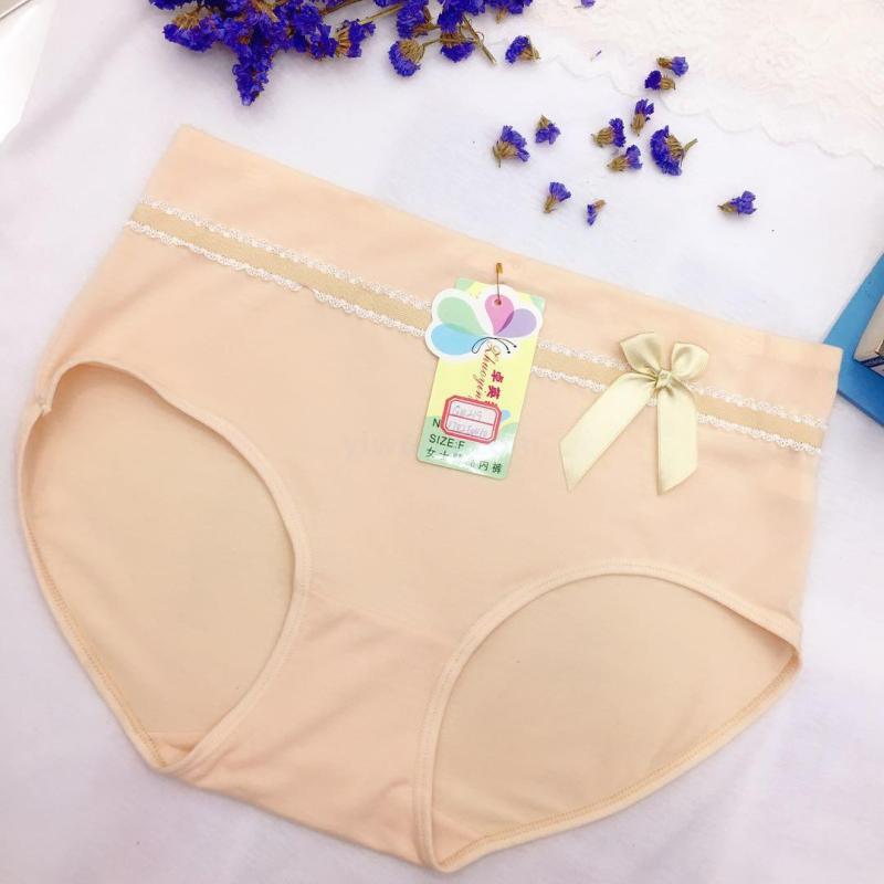 Foreign Trade Underwear Women's Underwear Lace Stitching Briefs Bow Solid Color Mommy's Pants Factory Direct Sales