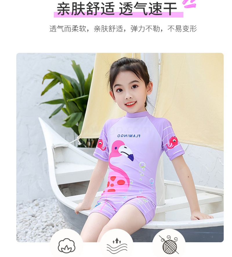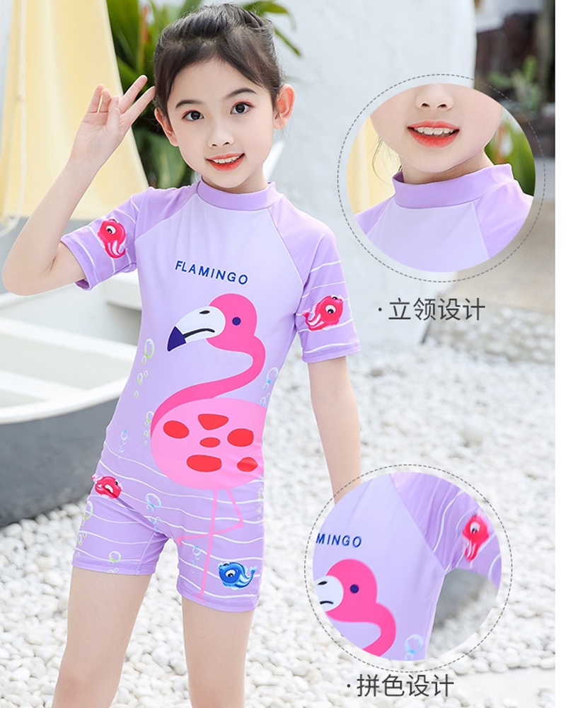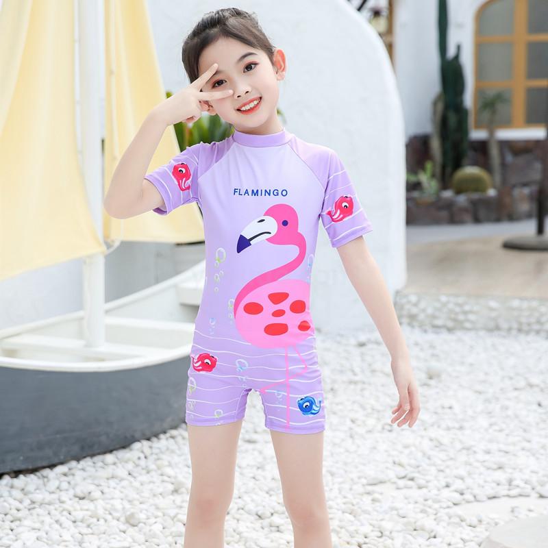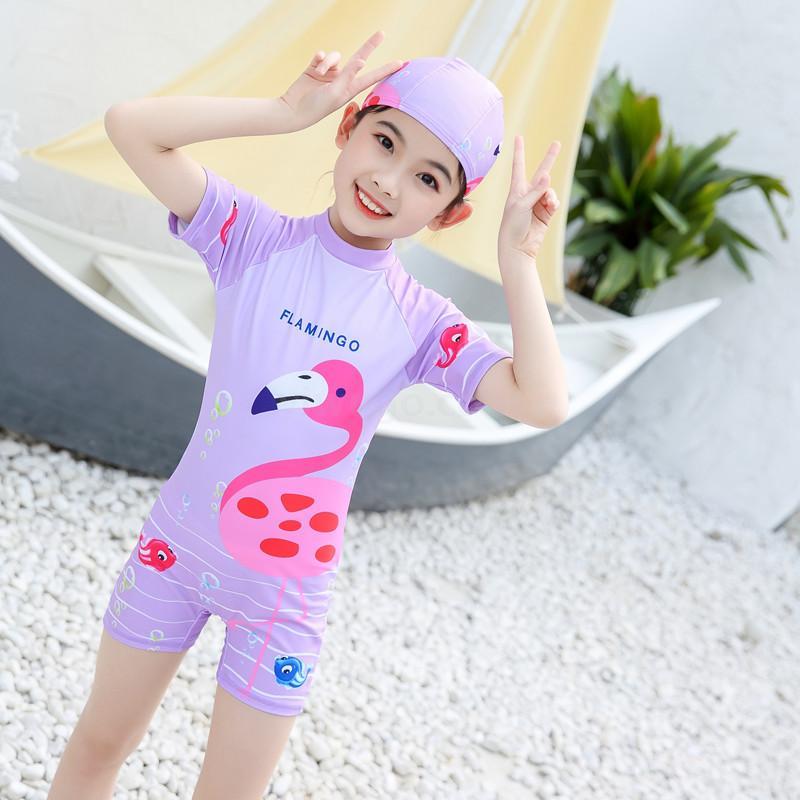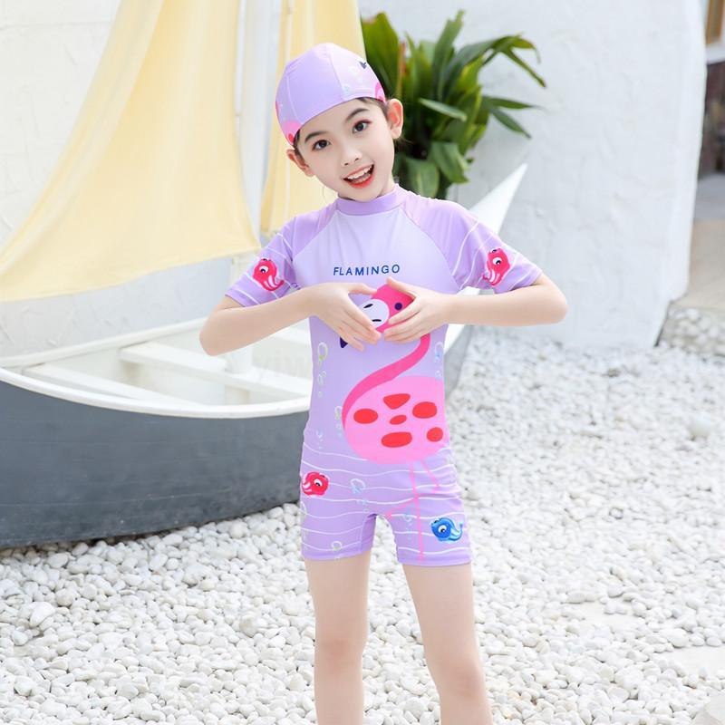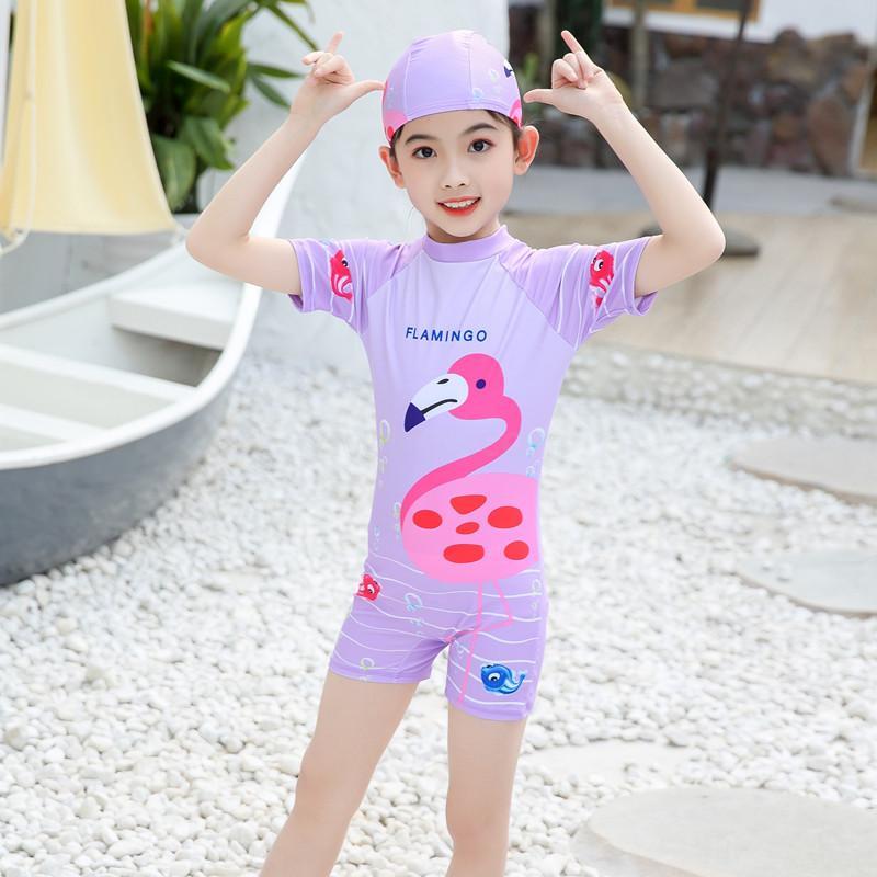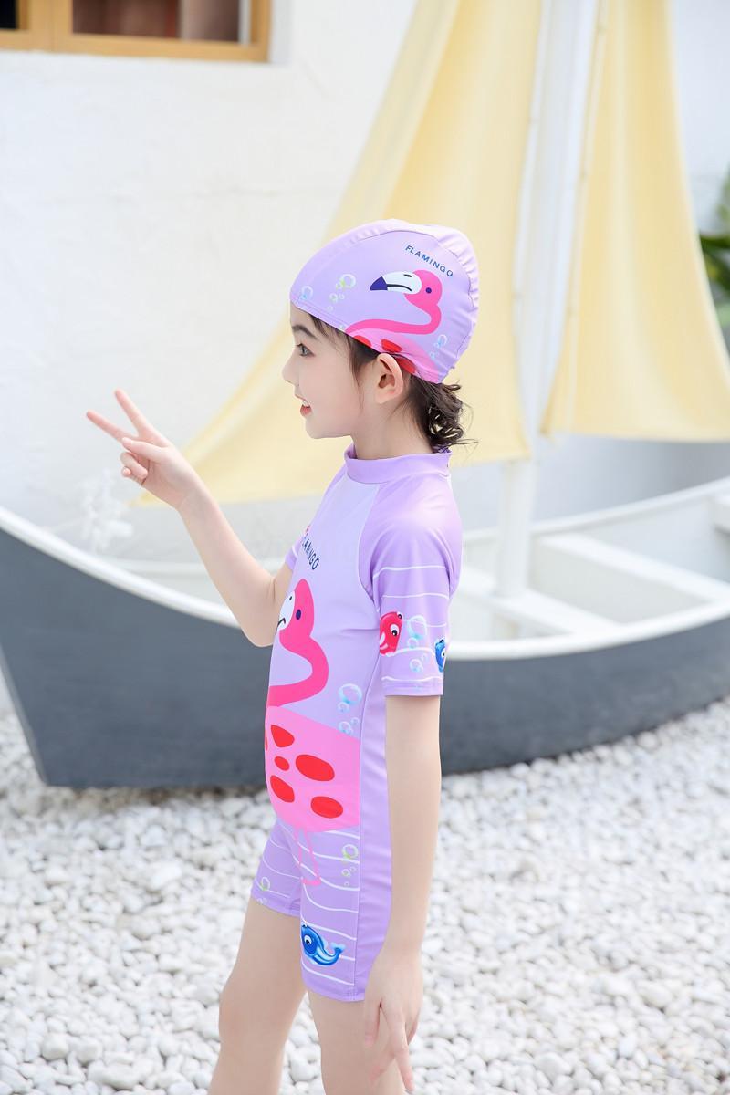 女童连体卡通泳衣 带帽子 布料弹性好手感舒适 四个码 L XL XXL XXXL 适合3-10岁女童