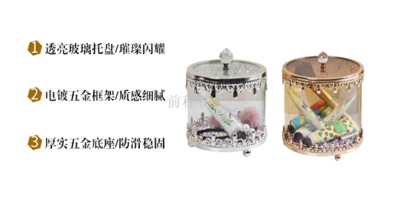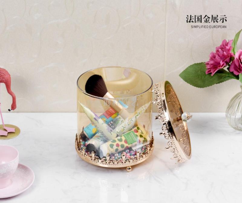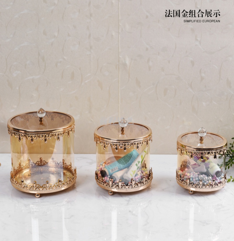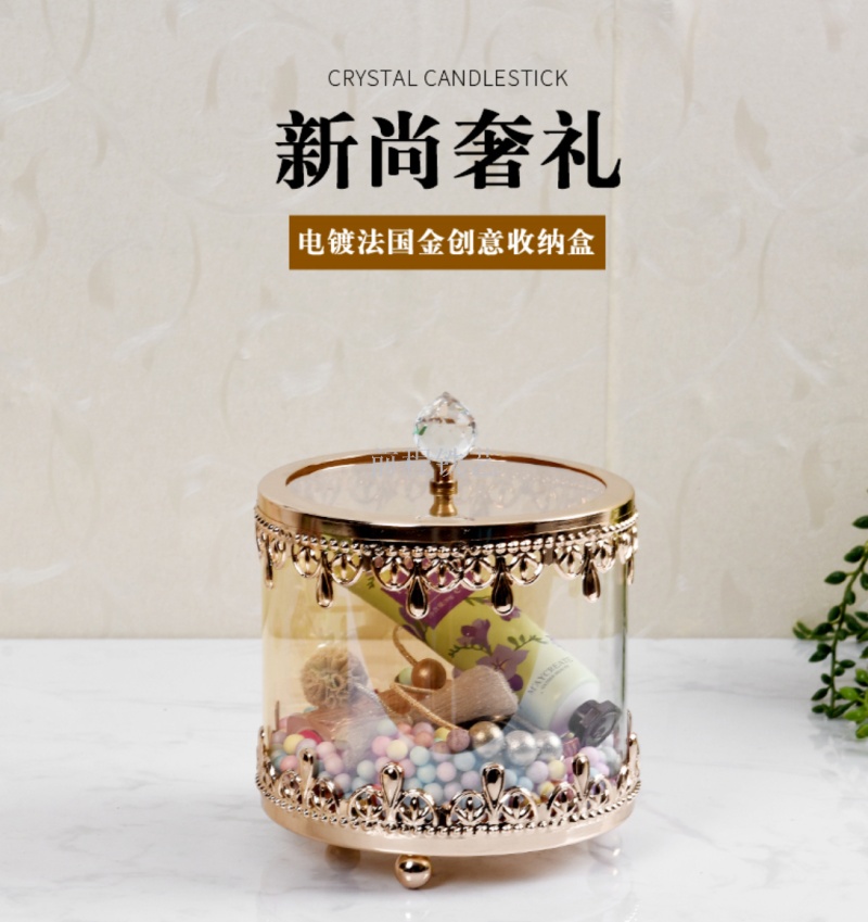 欧式带盖圆形玻璃糖果罐水晶储物罐收纳盒北欧罐子创意装饰品摆件