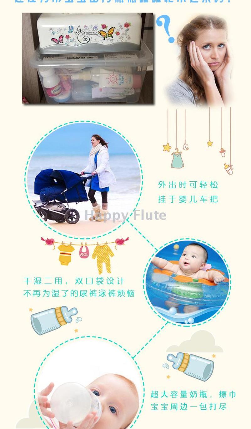 Zipper compartment, convenient and fast. Can be hung on the stroller, stylish and beautiful.