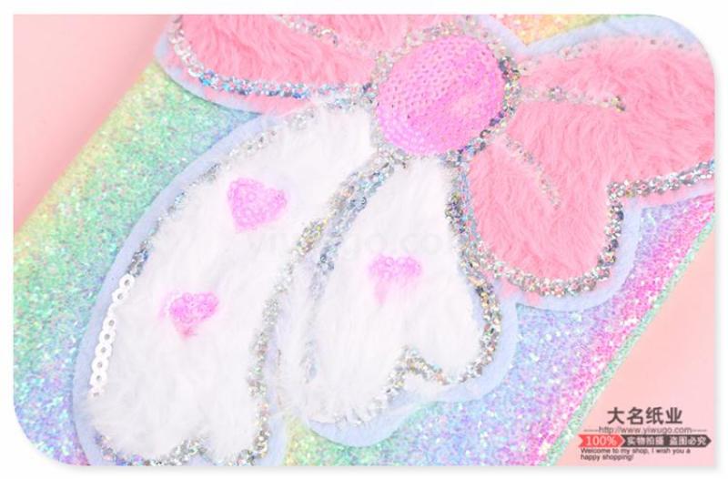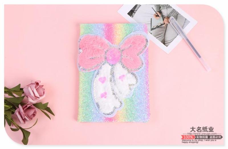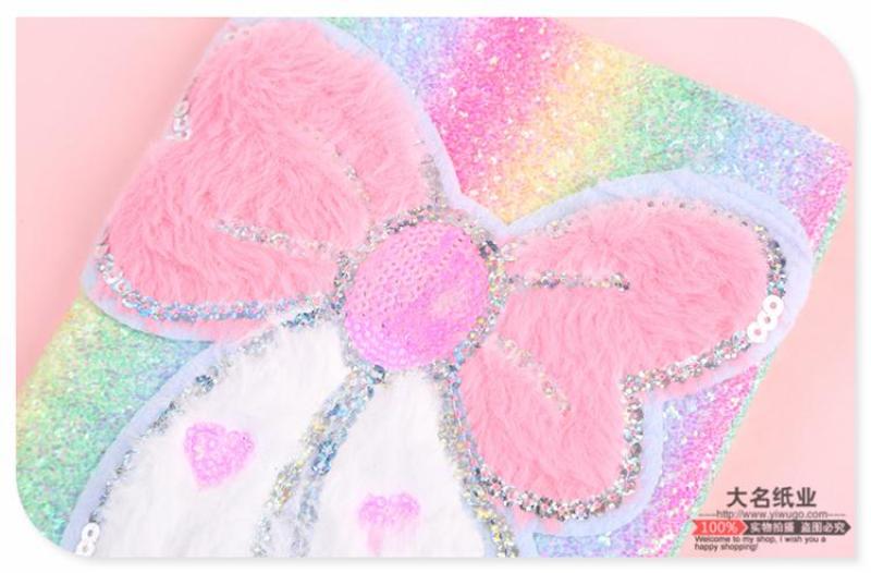 商品名称:少女心梦幻亮片蝴蝶结装饰毛绒笔记本 粉软妹便携日记本手账本
