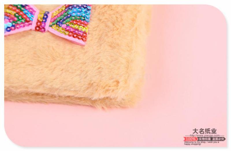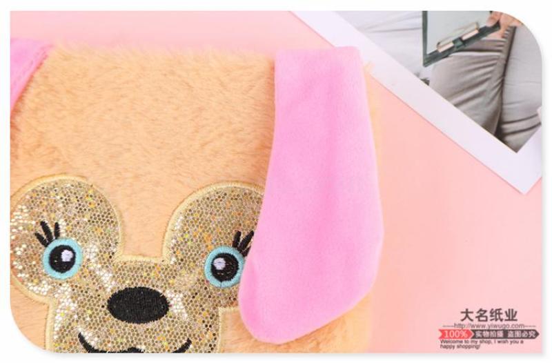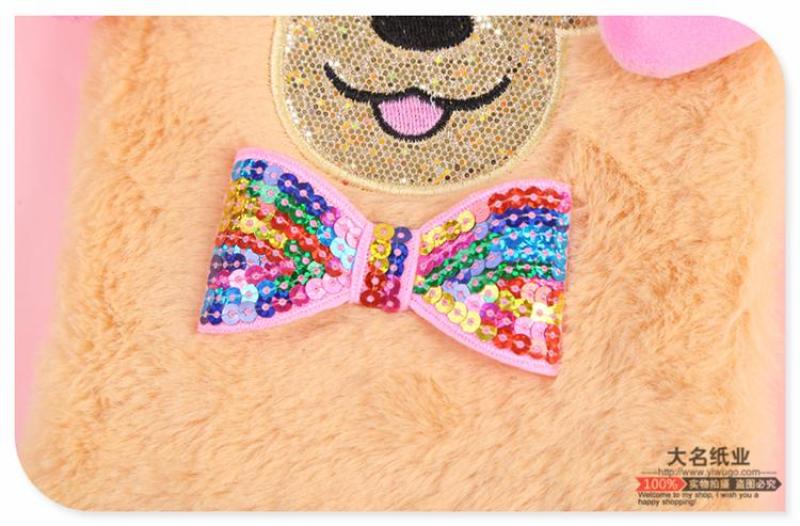 japanese and korean students kawaii dream sequined diary short plush dog pattern with bow tie ear notepad